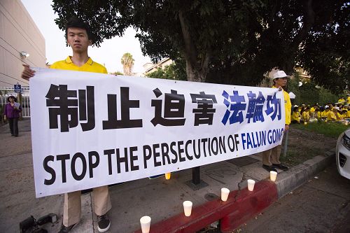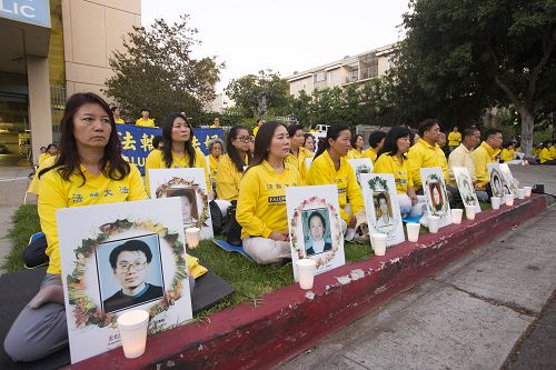 ![]() 图1-7:二零一六年七月二十日傍晚,洛杉矶中领馆前烛光摇曳,上百名法轮功学员举行烛光夜悼,呼吁停止迫害、法办迫害元凶江泽民。 |