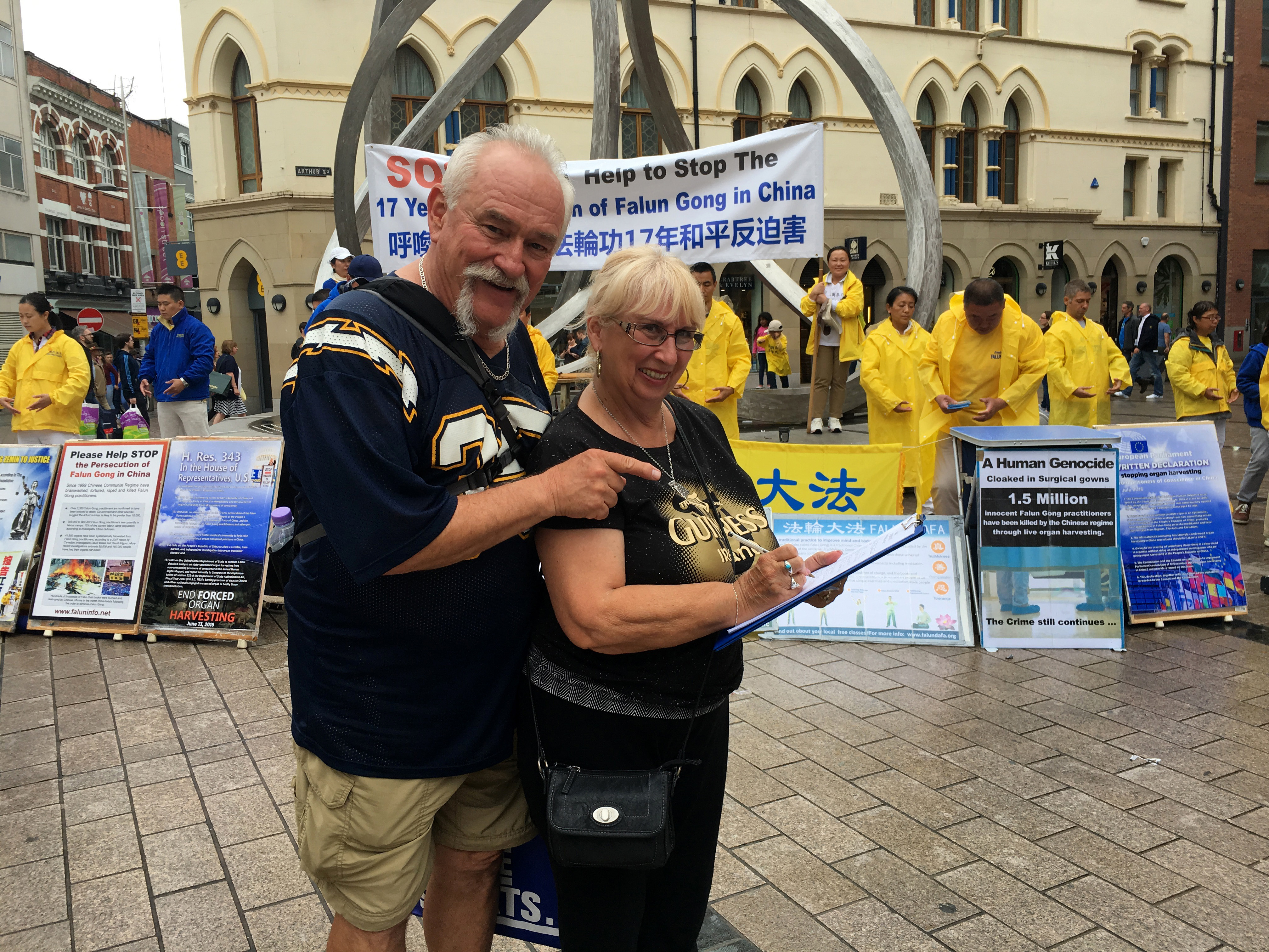 ![]() 图7:威廉姆斯夫妇呼吁更多的人来签名声援法轮功 |