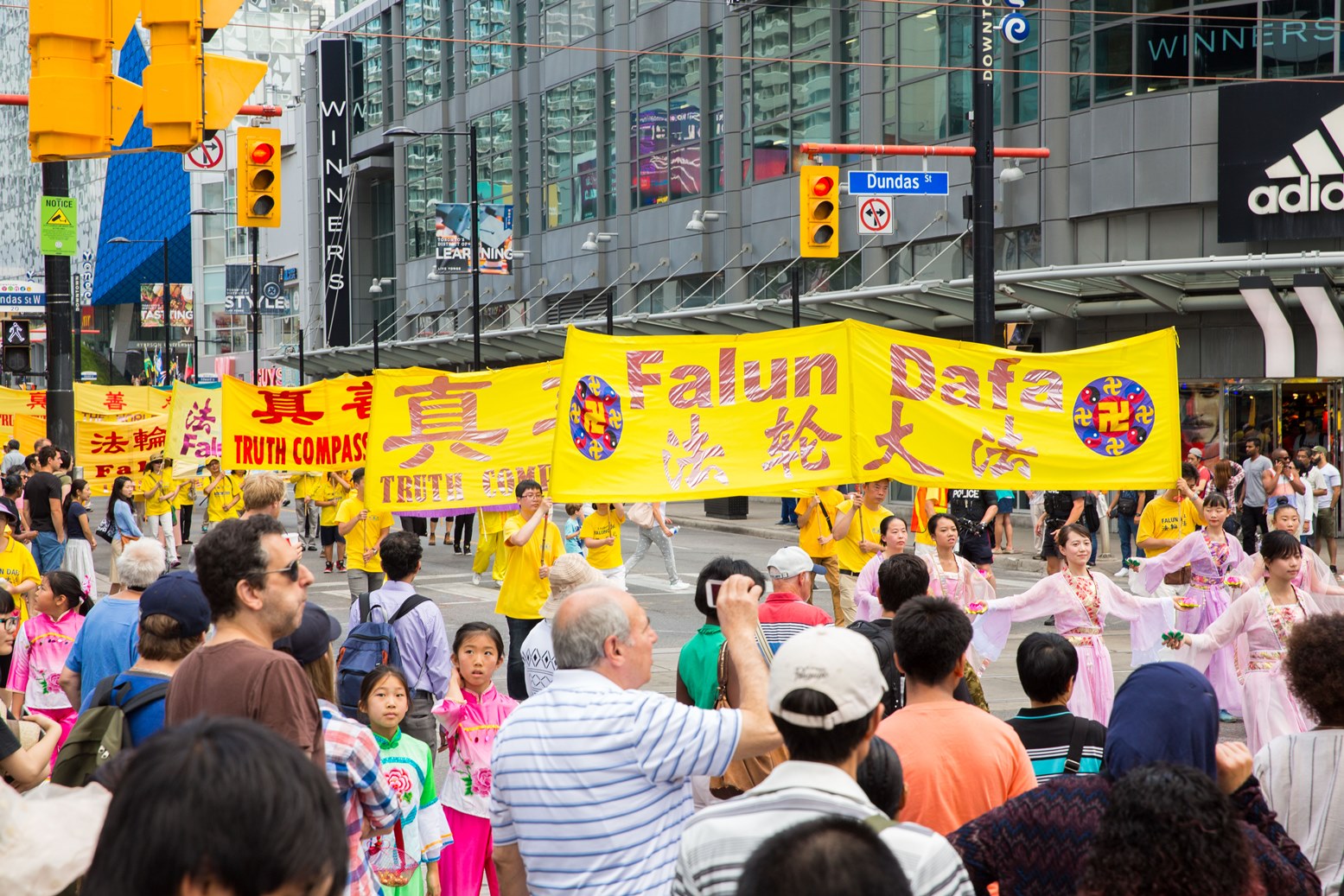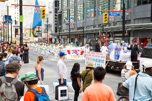 图1-4:二零一六年七月二十三日,法轮功学员在加拿大多伦多市中心举行了历时两小时的大游行。