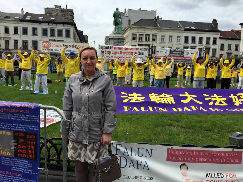 Hulan女士是一位奥地利舞蹈演员,也是一位瑜伽老师,她被法轮功学员祥和的炼功动作和纯净的能量场所吸引。她认为功法很美。知道了中共活摘法轮功学员器官后,她表示无法用语言表达心情,觉得太震惊和可怕了。她要把这次经历告诉她的朋友们,并要多了解法轮功被迫害的情况。