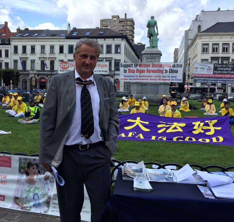 Thomas 是布鲁塞尔的独立摄影师,他看到法轮功学员的活动,知道了中共活摘法轮功学员器官的真相,表示非常震惊,他说:“对人类来说,发生这种事情是非常可怕的。”他要把中共活摘法轮功学员器官的情况放到他的脸书上,让所有的朋友知道这件事情,他认为很重要。