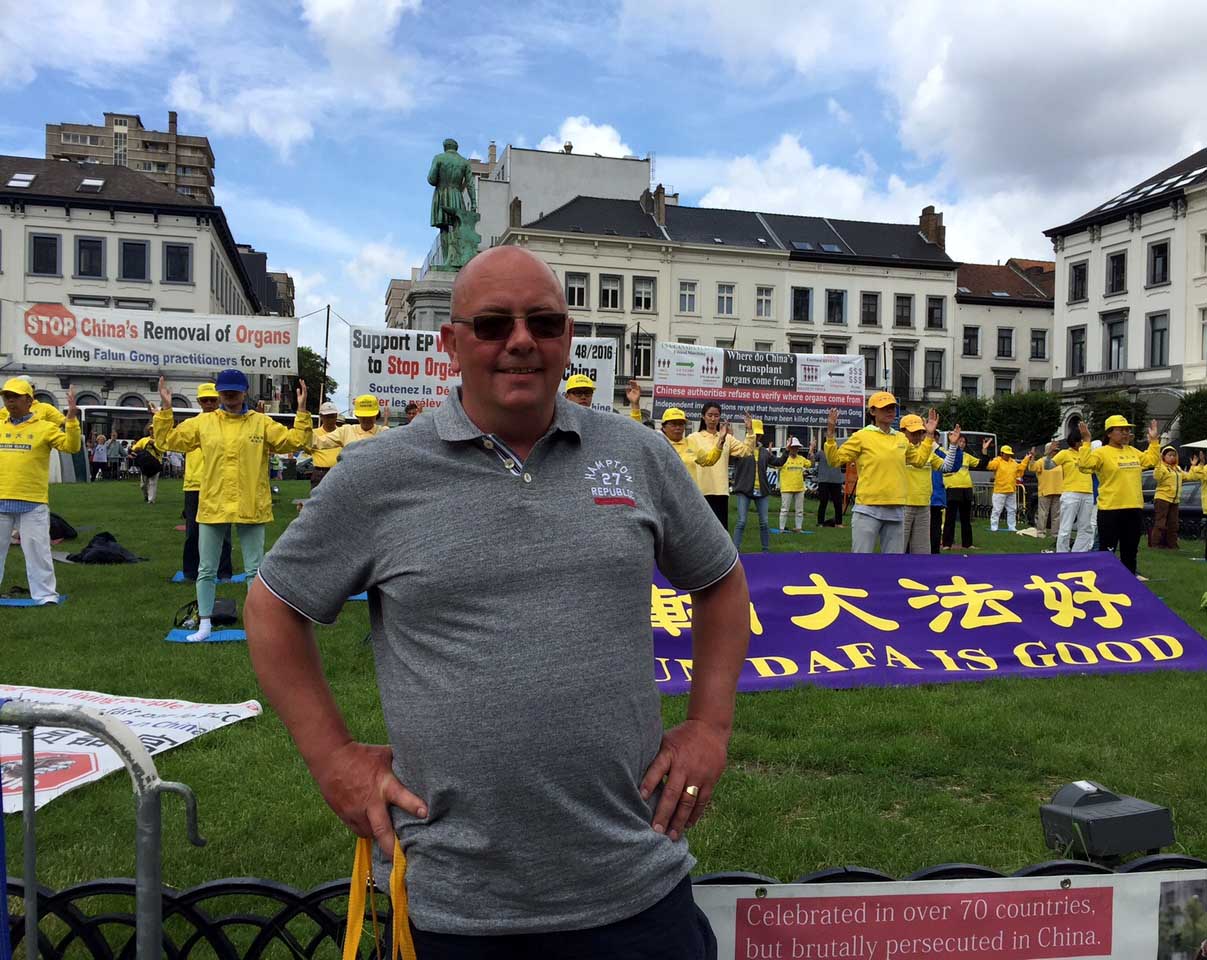 Lozz先生是比利时的一位生意人,他的工作范围很广,比如文物保护、健康和企业。他对法轮功学员表示:“我只想说,我很高兴你们在这里。全世界都应该知道你们所做的,这是那个世界最大的国家的耻辱。你们来到布鲁塞尔是对的,这里有二十八个国家,每一个人都应该知道,你们做得很好。祝贺你们,坚持!继续!上帝保佑你们!”