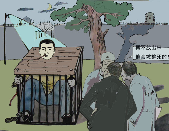 在松山区看守所,周彩霞被上吊铐在院子里,一个普通犯人正在浇花,当时就用浇花的水管子往周彩霞的身上浇凉水,当时周彩霞就被冷水激哆嗦了。那个迫害周彩霞的普犯,本来剩七天就出监了,但是迫害周彩霞后,受别人指使他竟然鬼使神差的提前越狱逃跑。被抓回来后,被警察轮番电击狠狠收拾一顿,当时的脸都被打肿了。