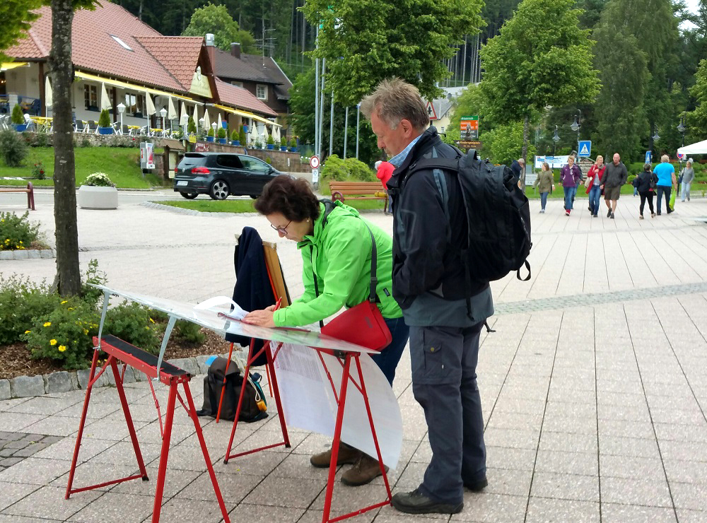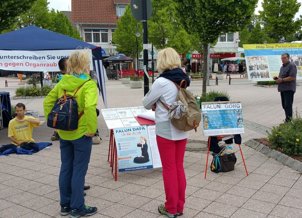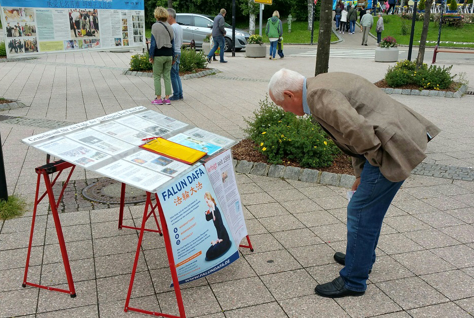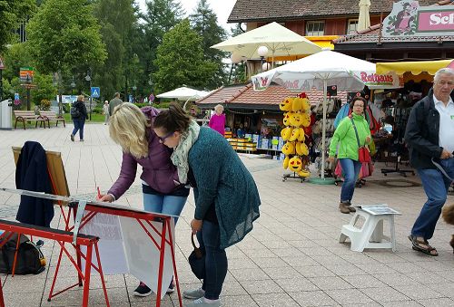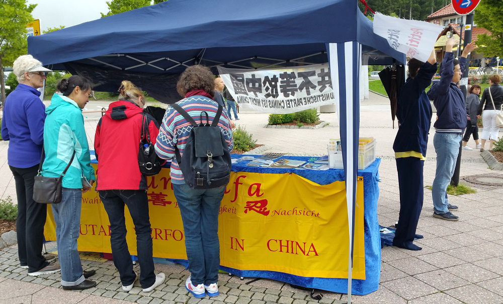 ![]() 图1-4:二零一六年七月二日周六,德国法轮功学员在德国黑森林缇缇湖风景区举办法轮大法信息日,吸引中西方游人驻足了解法轮功。许多人认真阅读真相展板。 |