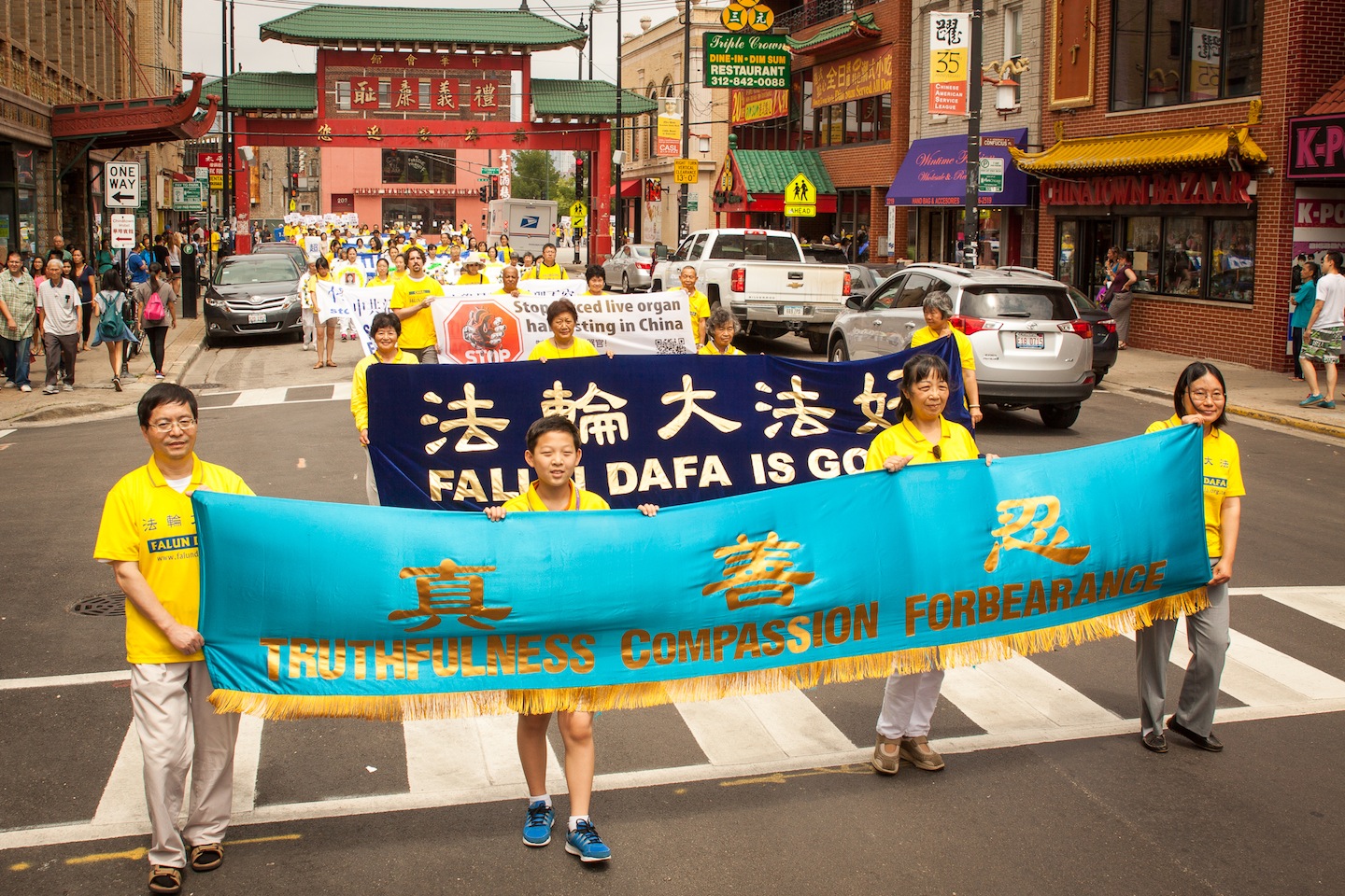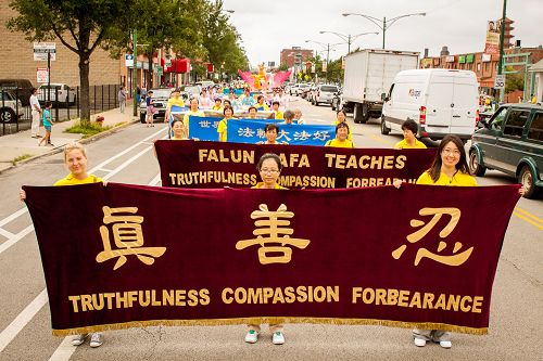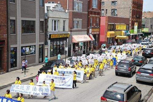 ![]() 图1-12: 二零一六年七月三十日,来自中部十个州的法轮功学员,齐聚芝加哥中国城举行盛大的游行 |