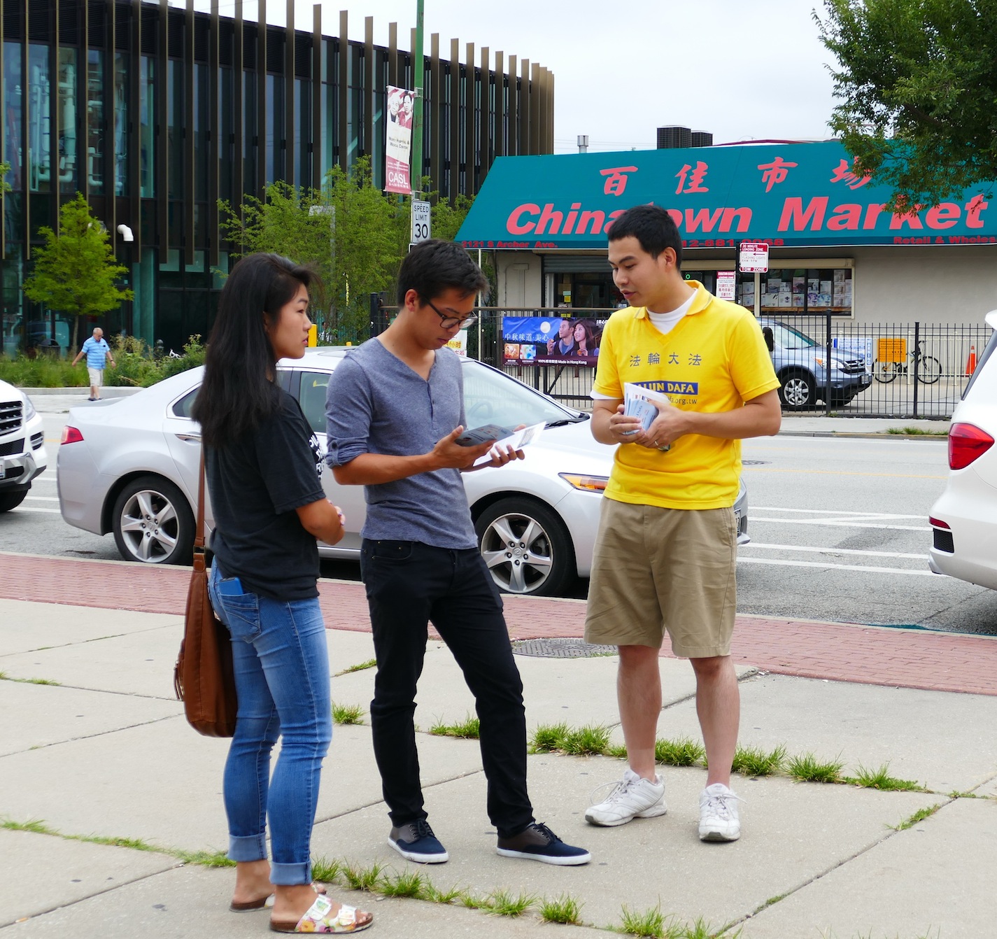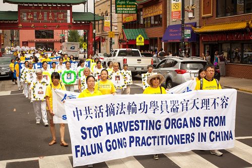 居住在芝加哥北部的Amy和先生、孩子们坐水上巴士(water taxi)到中国城吃点心。她在华埠广场前看到法轮功游行队伍,十分震惊游行中揭露出的中共强摘器官的真相。她说:“(这是)非常重大的事件!而他们如此的和平、宁静,传达着强大有力的信息!很高兴他们能站出来让更多人知道。”
