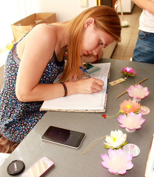 ![]() 基辅建筑学院学生卡莉娜在写留言 |