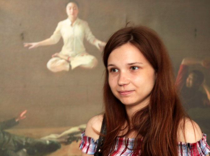基辅建筑学生卡莉娜说到参观画展的感受,对画中传递的价值非常惊讶:“今天看到非常令人惊讶的画。从画中,我看到人的意志会是那么的强大,鼓励人们为了自己的信念要生存下去。画中的人物,也似乎在告诉我们:不要随波逐流,不要脱离正统的生活,才能避免以后下地狱——我们需要拥有信念,需要保护他们(大法弟子)。”