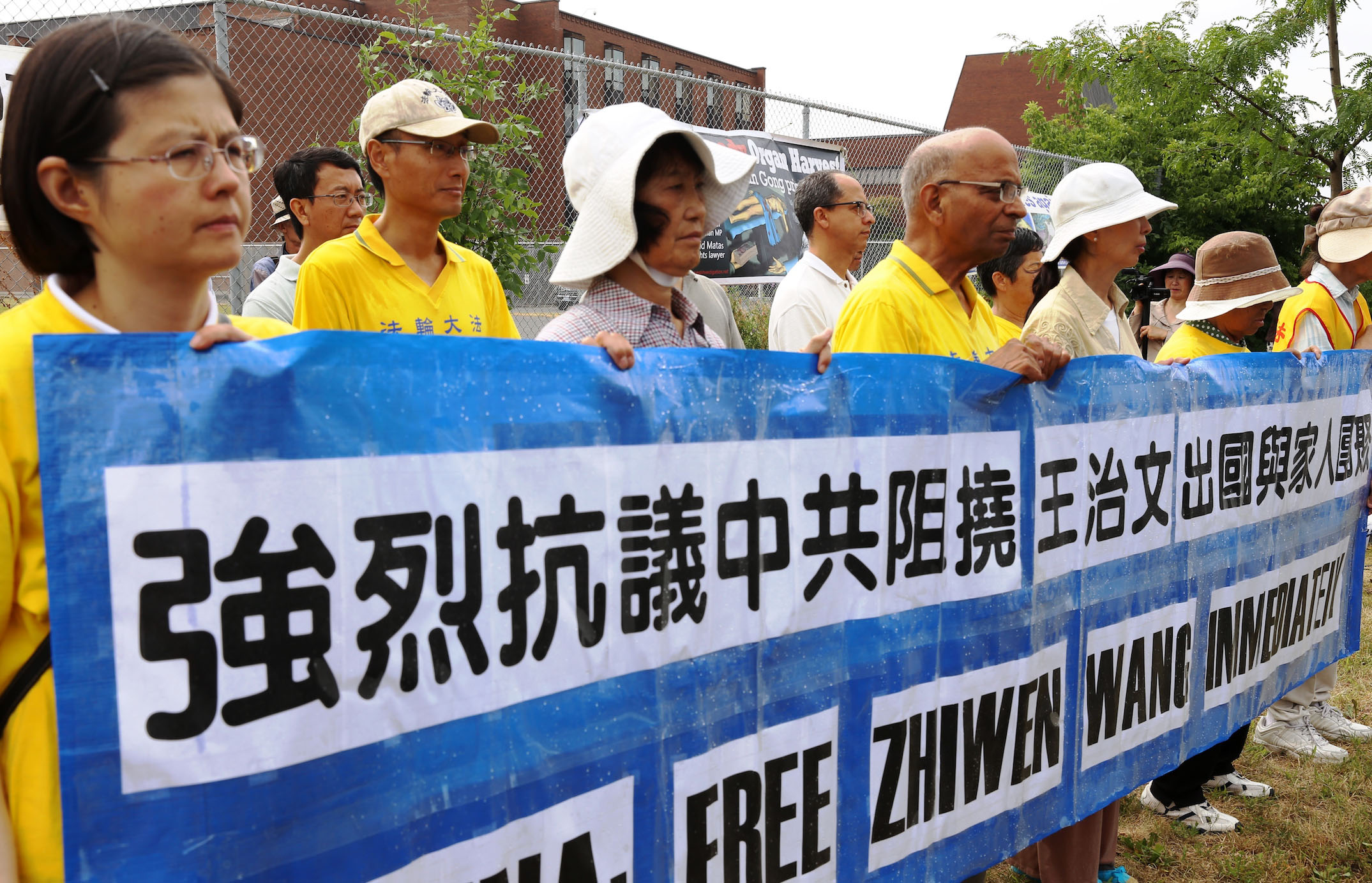 加拿大首都法轮功学员抗议中共阻王治文出境(图)
