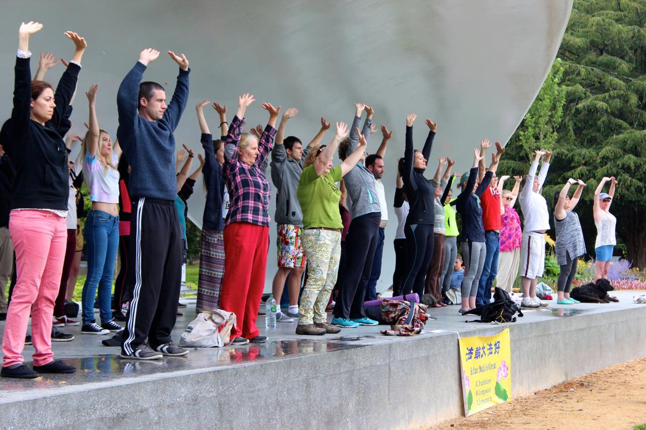 很多人在教功班结束之后,都不想走,又和法轮功学员在一起交谈了三个多小时。他们也问了很多问题,比如这么好的功法,为什么在中国遭到如此残酷的迫害。学员向他们介绍了中共在历年的阶级斗争中是如何把中国传统文化消灭,并如何惧怕法轮大法的道德感召力,从而开始血腥镇压,包括活摘器官这样的滔天罪行。人们纷纷表示支持法轮功,向更多的人介绍功法,并邀请周围的人一起反对迫害。最后人们都在控告江泽民的声援书上签了名。