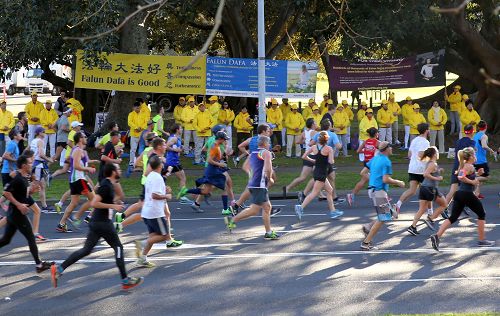 据悉这是世界上最大规模的慈善长跑活动,当天悉尼风和日丽,人们愉快地分享运动和慈善带来的乐趣,很多人跑过时看到法轮功学员展示功法,有的鼓掌,有的竖起大拇指,有的挥手打招呼:“法轮功好”、“谢谢你们”、“祝你们好运”、“你们最棒(You're the best)”、“你们是冠军”,有的还用中文说:“加油”,有的则对同伴说:“看他们打坐很美,让人感到愉悦”。