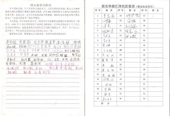 在蔬菜批发部,有当地菜农和远一点的农民,他们听说签名举报江泽民,劲头可大了,其中一农民说:“早就盼望这一天,江泽民没有给我们一点好,给我们带来的都是苦难”。当时六个人签了名。