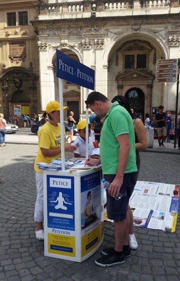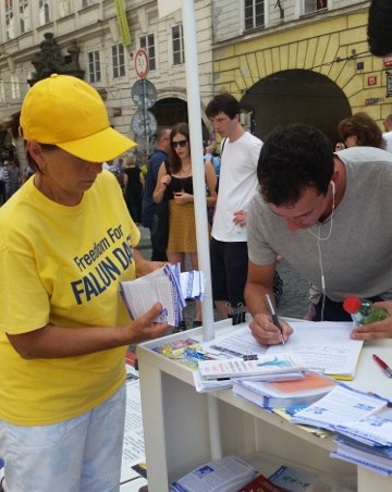 ![]() 图1:捷克布拉格法轮功学员在查里桥举办讲真相活动 |