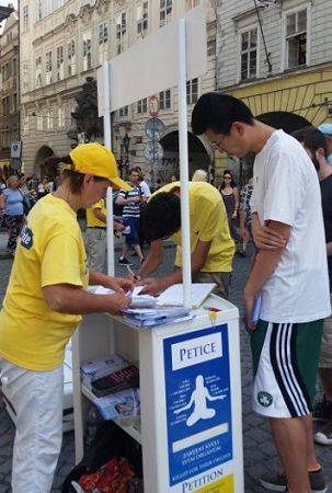三位中国大陆年轻人从荷兰旅游到布拉格来,听了学员讲真相之后说:“我们在荷兰也听了真相,但没做三退(退出中共党团队,简称三退)。你给我们做三退吧。”学员给他们分别起了三个化名,他们高高兴兴地做了三退。临走时还主动拿了一些真相资料。