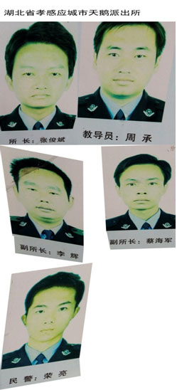 ![]() 派出所所长张俊斌、指导员周 承、李 辉、蔡海军、荣 亮的照片 |
