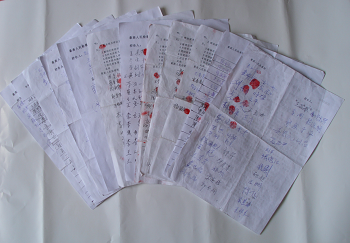 黑龙江省密山市和周边地区有的法轮功学员从2015年七月份,在向老百姓讲真相时,一边讲清真相、劝三退,一边征签起诉江泽民。有的人听明白真相后都做了三退,并在征签表上郑重的签上自己的名字,按上红手印。到现在已经有2039人签名控告江泽民。