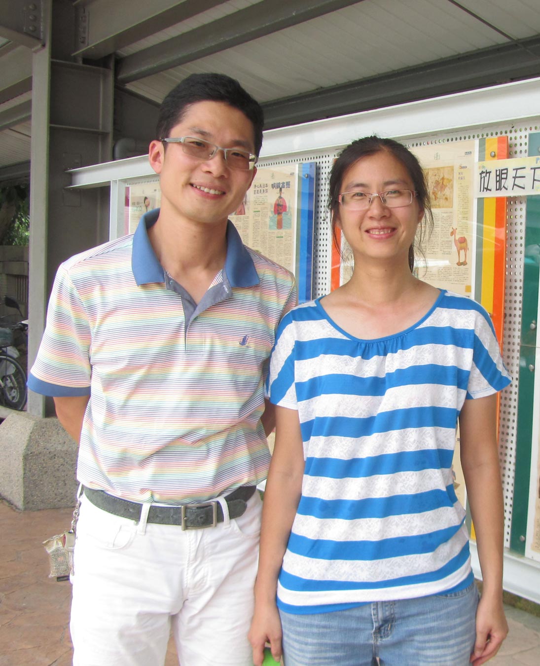 图2:拥有台大硕士学位的家玮和妻子馨云听取同修讲真相的心得,自我勉励加快脚步抓紧时间讲真相。