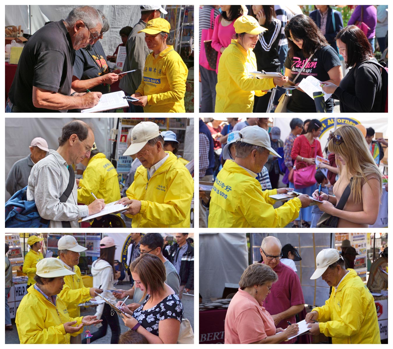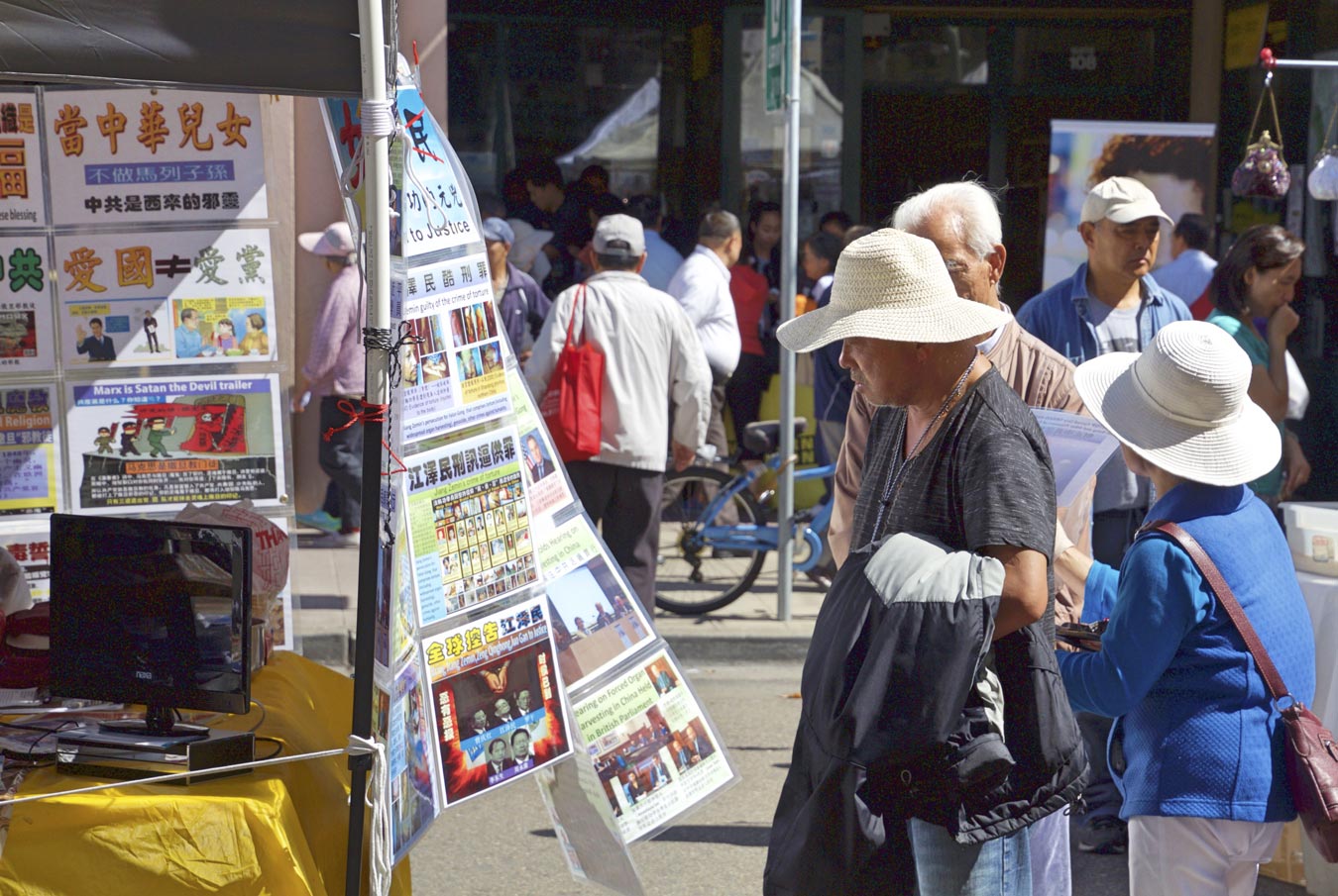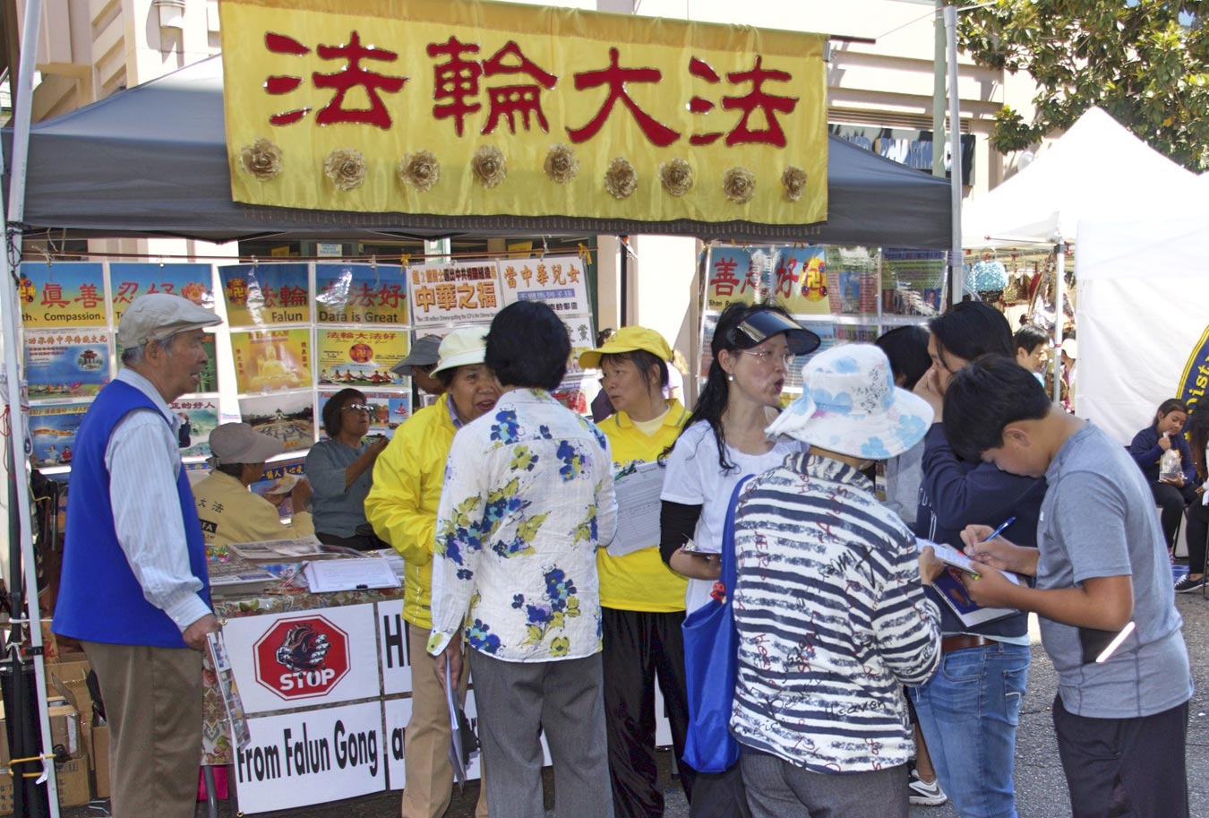 在两天的街会中,法轮功学员在展位上展示了法轮功弘传世界,揭露中共酷刑迫害法轮功学员、活摘法轮功学员器官的真相图片,并征集签名制止中共活摘。众多人,包括华人认真倾听学员讲述真相。听到中共大规模活摘法轮功学员器官,人们感到非常震惊,认为这是不能容忍的邪恶,这是不可饶恕的罪行,所以许多人主动要求签名支持法轮功学员,他们认为,这种罪恶要立即被制止。