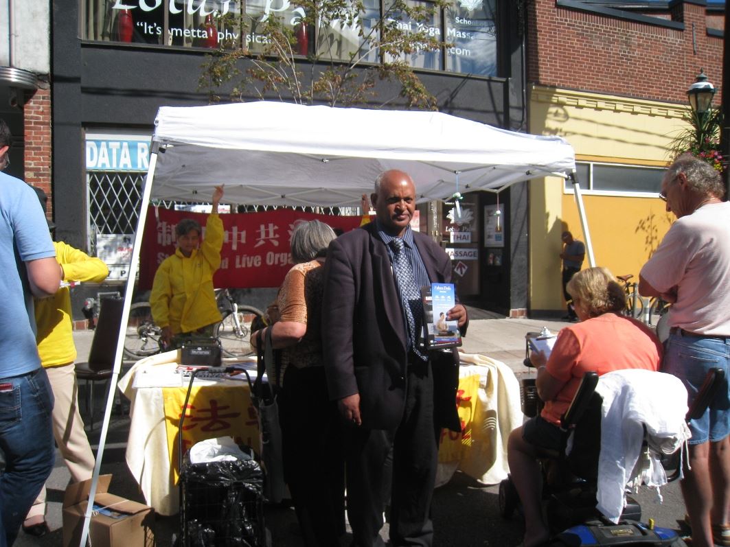 Afewerki Dagnew先生是一家全球性组织机构的主席兼总裁。当从法轮大法展位处经过时,看到学员正在发《难以置信》(HARD TO BELIEVE)免费电影宣传单时,就从学员手里拿过来一大叠传单。Dagnew先生告诉法轮功学员说他早就签过制止中共迫害法轮功学员的征签表了。Dagnew先生说:“我签名就是想要帮助法轮功学员制止迫害并能够在这个世界上和平、安全地活着,这是个人权问题。”