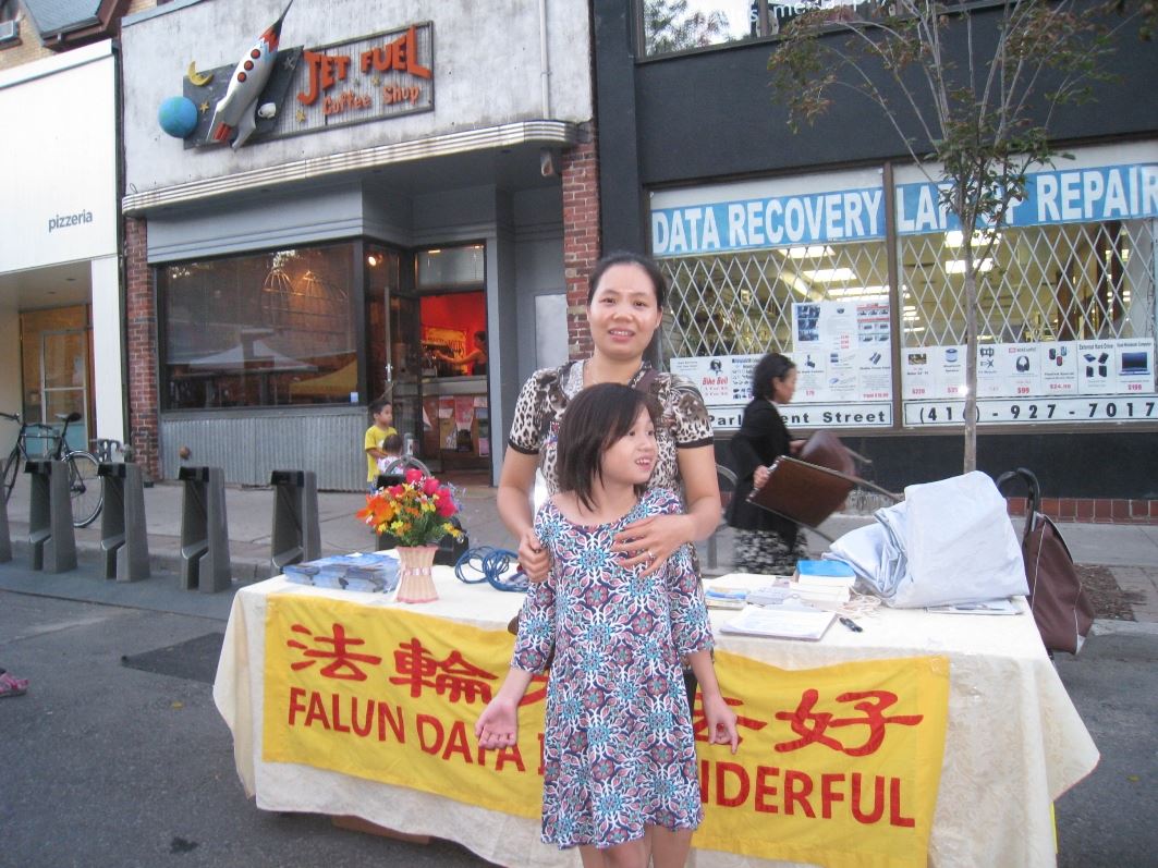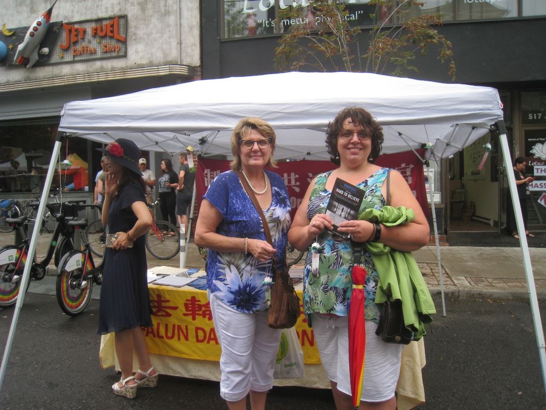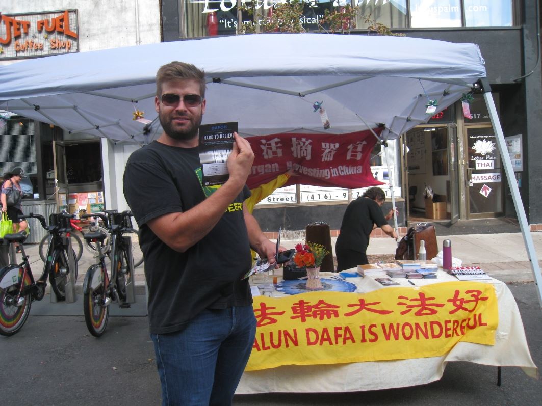活动的第二天,一位住在多伦多市中心高档公寓的居民来到展位处,对法轮功学员说:“能不能再给我两张《难以置信》海报,我昨天在这里拿到的海报(其实是一页纸的传单)已经贴到我们公寓里了,现在那里还有两个地方可以贴,所以我想再要两张。”