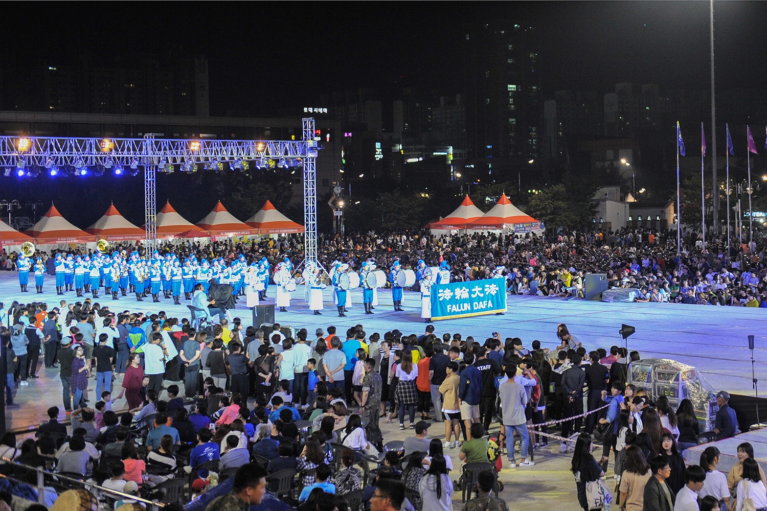 ![]() 图3-4:韩国天国乐团在原州Tattoo剧场外的大型特设舞台上演奏,全场观众热烈欢迎。 |