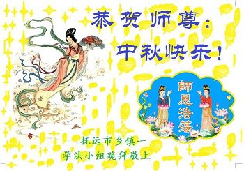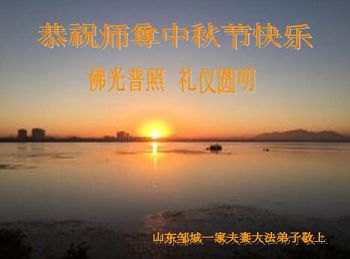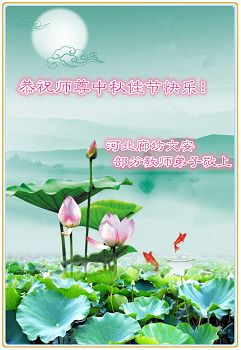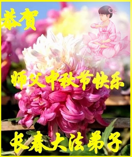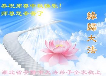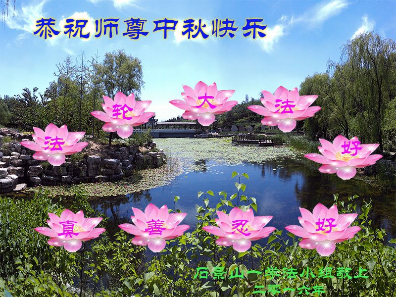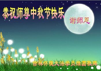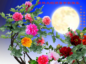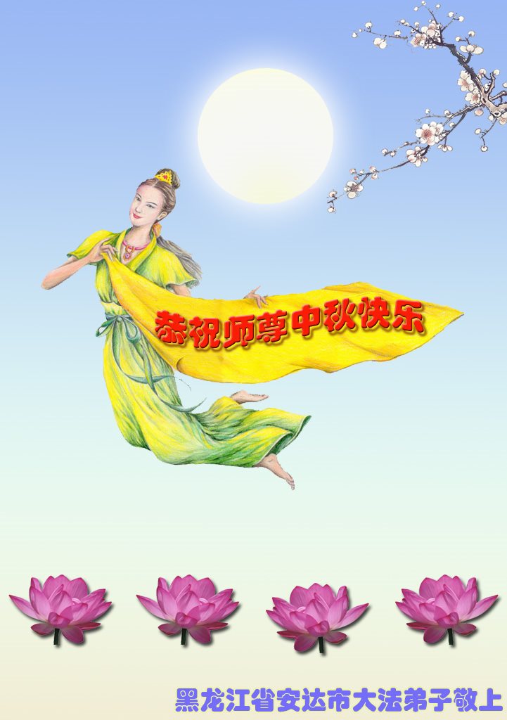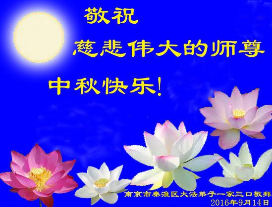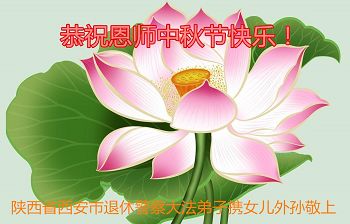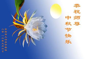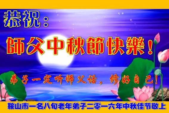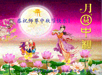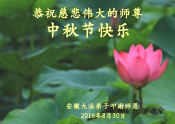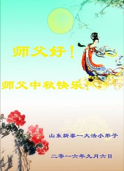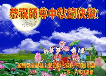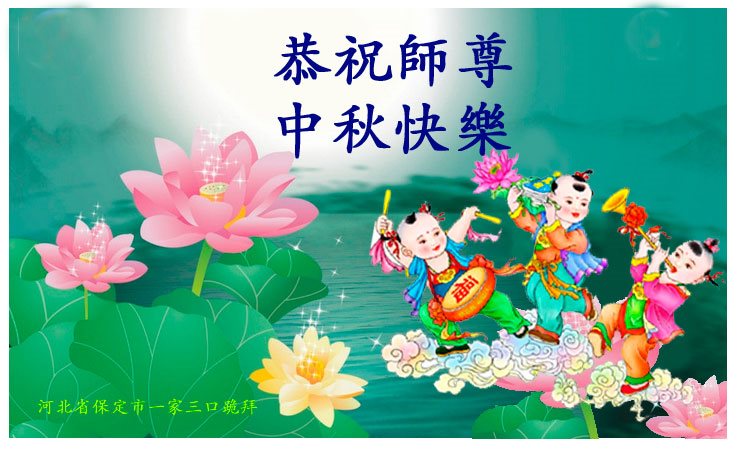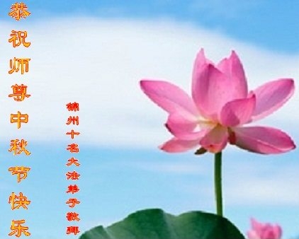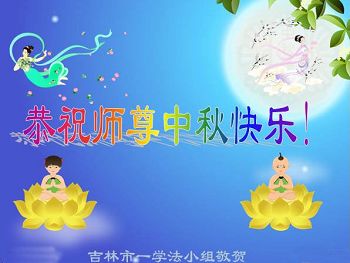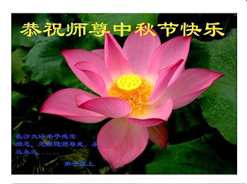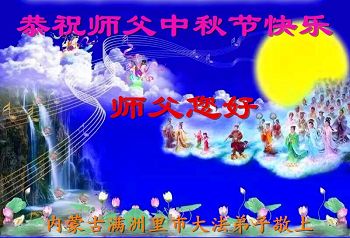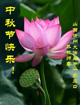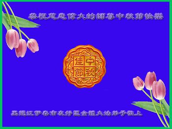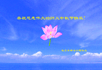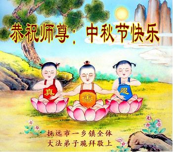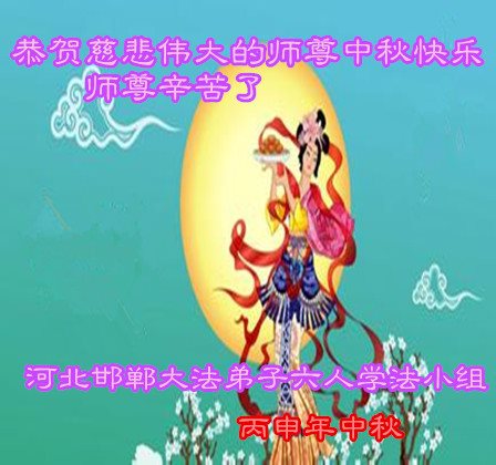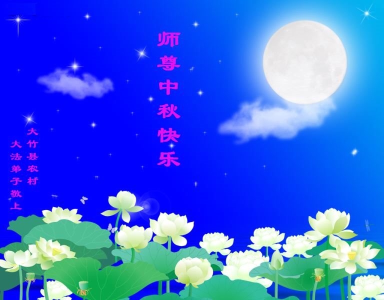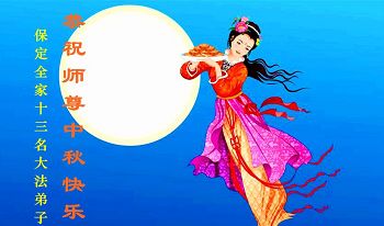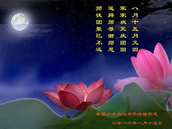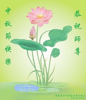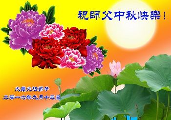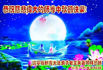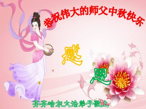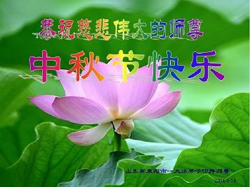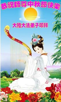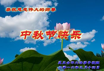 中秋节快到了,我和我得法三年,过去一字不识现在能看大法书学法,八十四的老母亲及明真相的妹妹恭祝师尊中秋节快乐!叩谢师恩,感恩师尊您的慈悲苦度。我们深知:没有恩师的救度,没有大法的传出,就没有我们的今天。