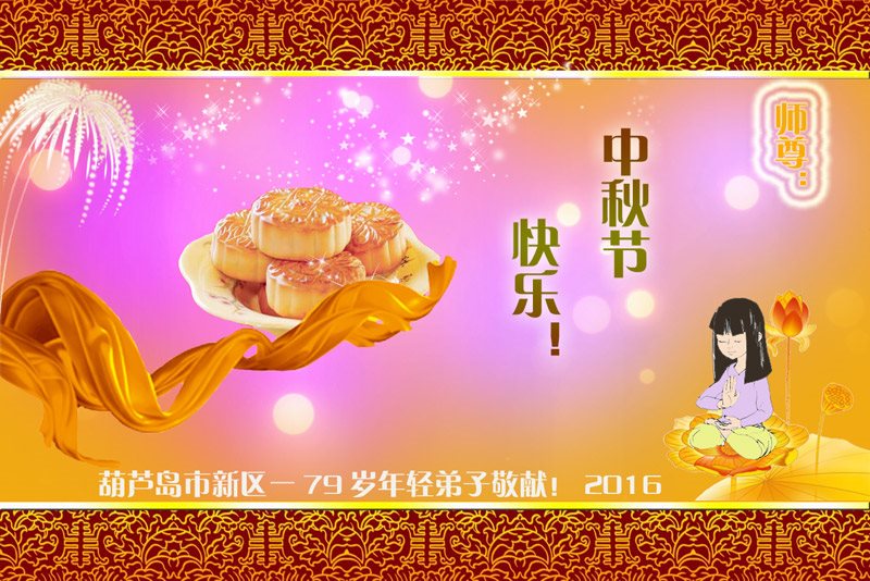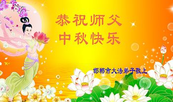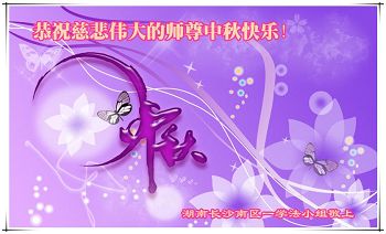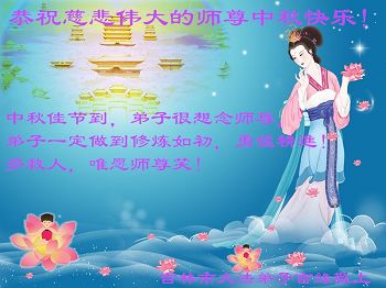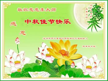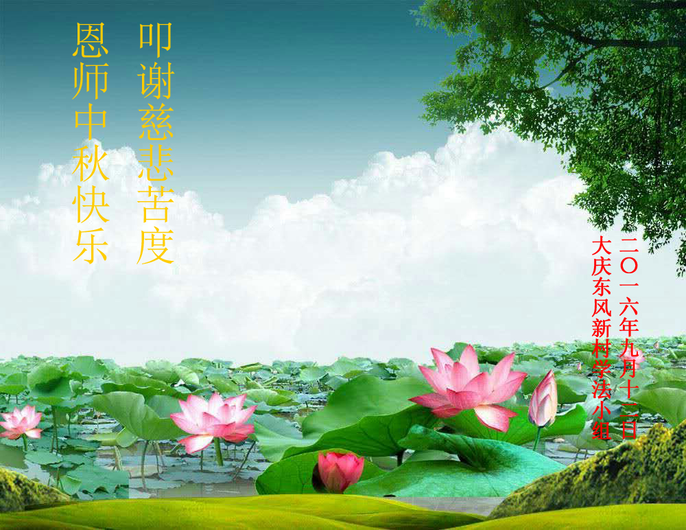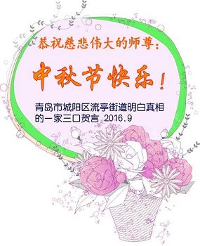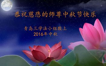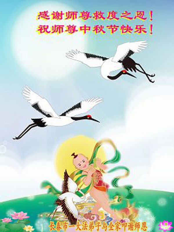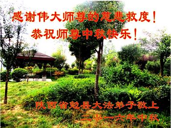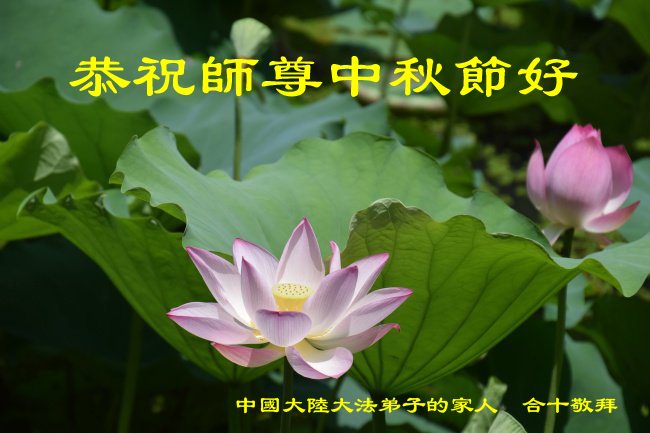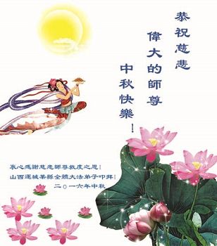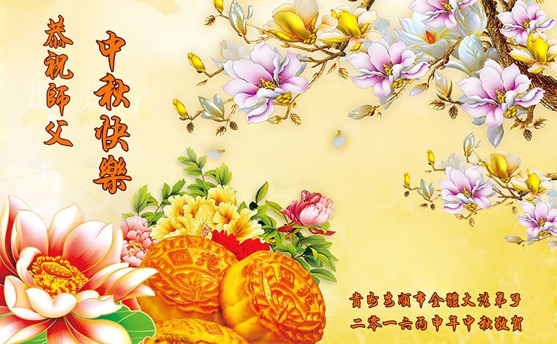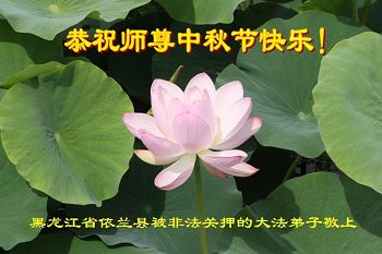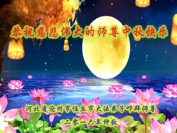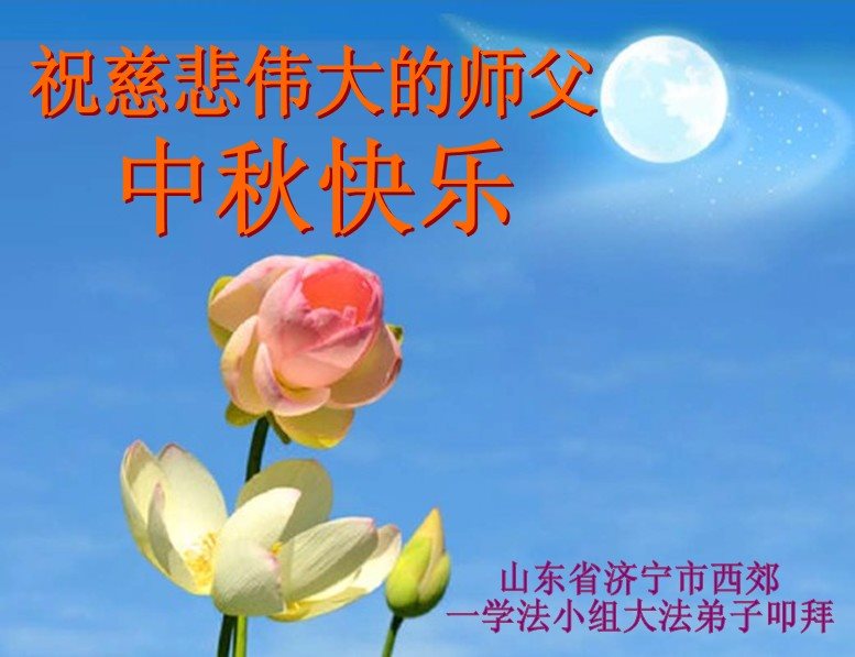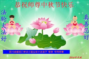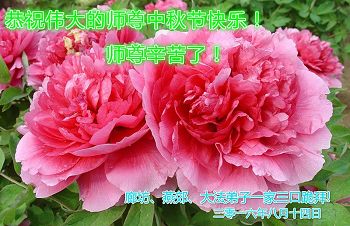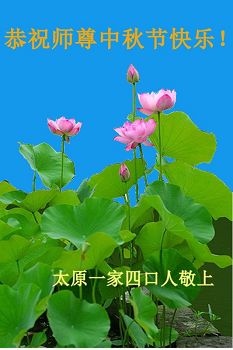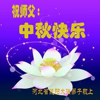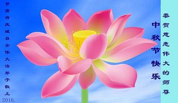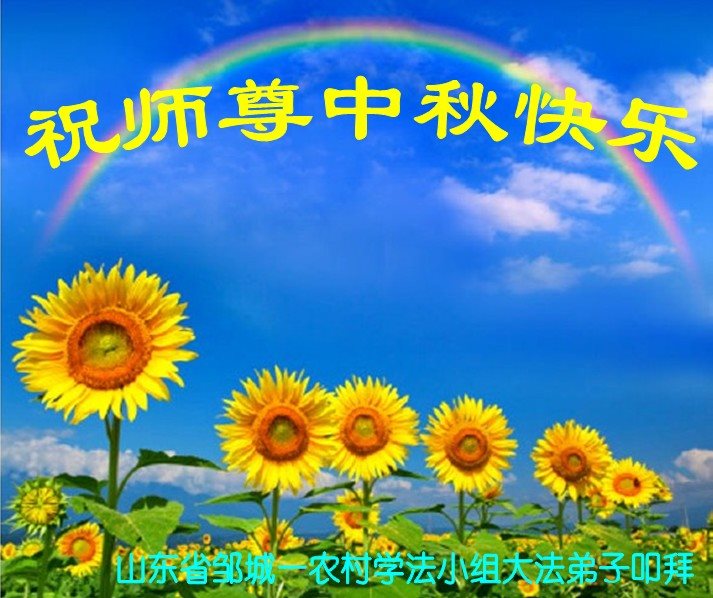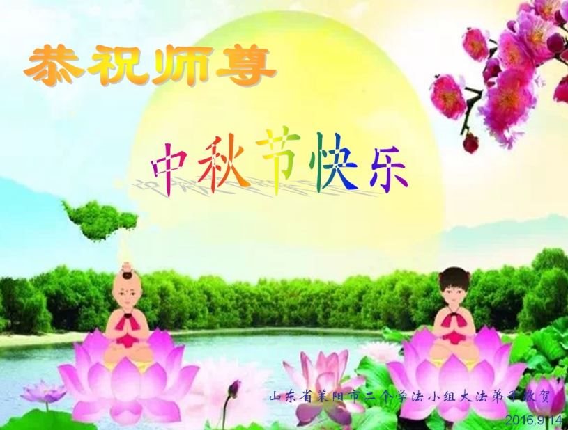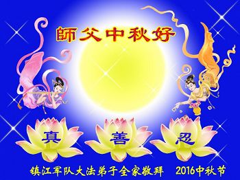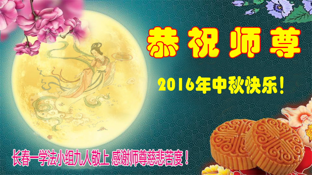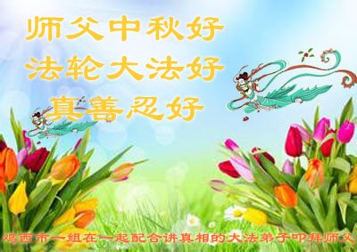 中秋节快到了,我和我得法三年,过去一字不识现在能看大法书学法,八十四的老母亲及明真相的妹妹恭祝师尊中秋节快乐!叩谢师恩,感恩师尊您的慈悲苦度。我们深知:没有恩师的救度,没有大法的传出,就没有我们的今天。