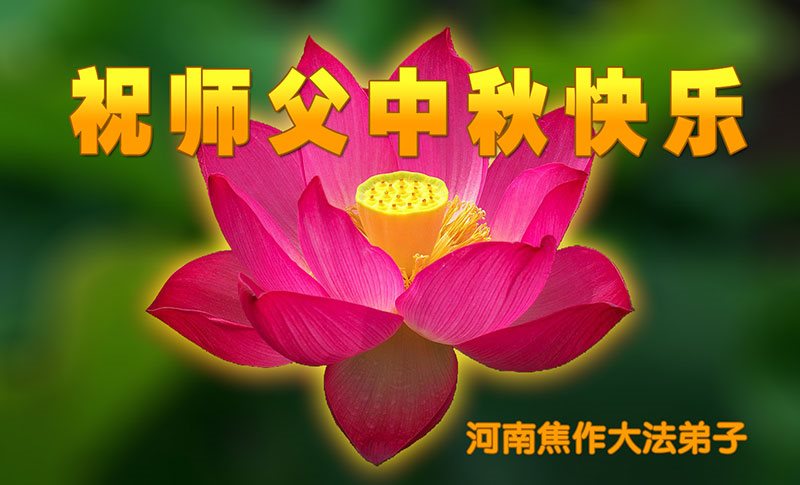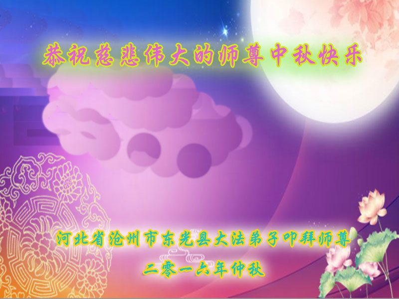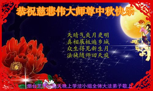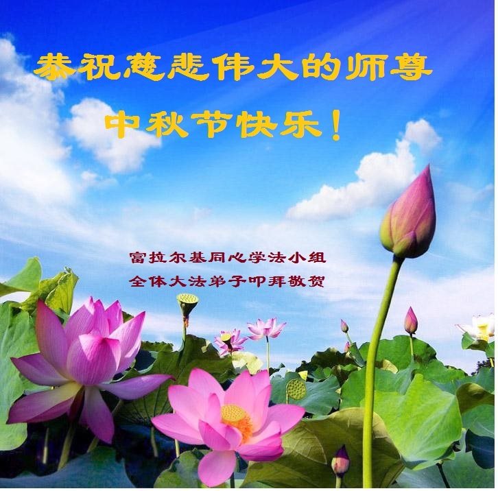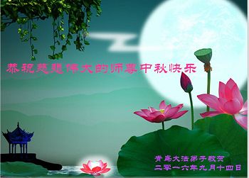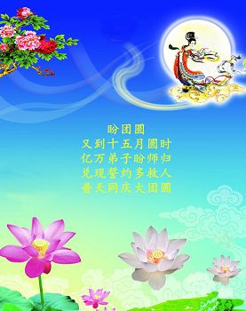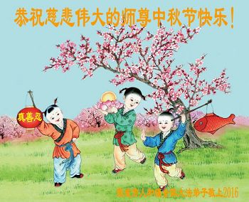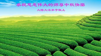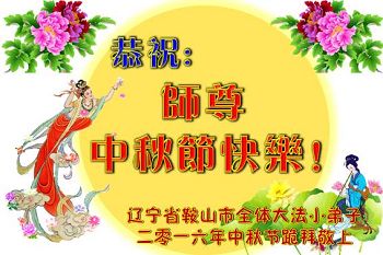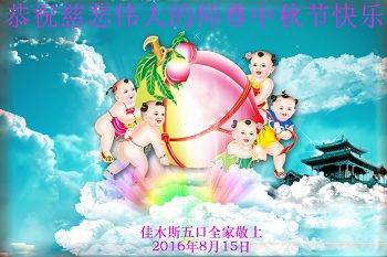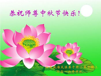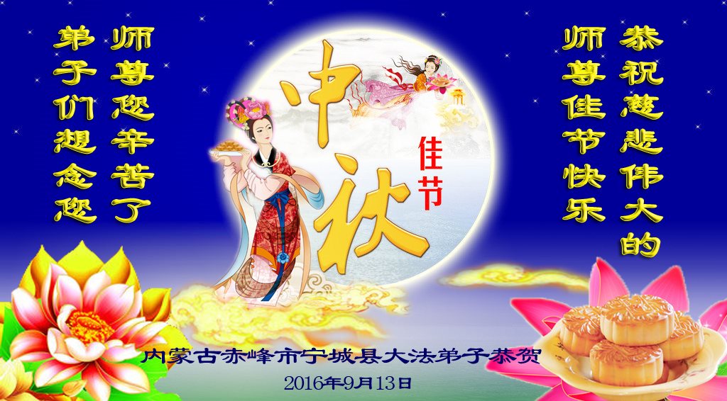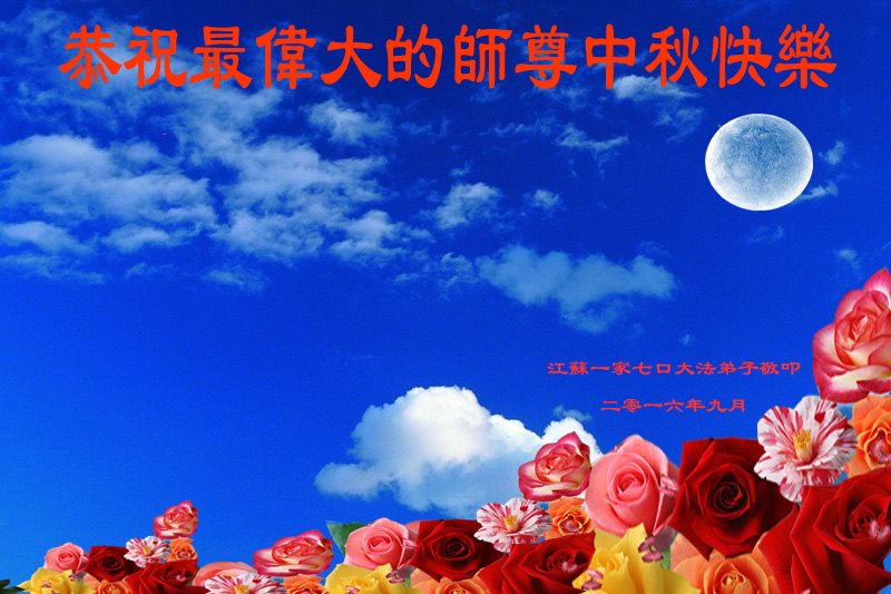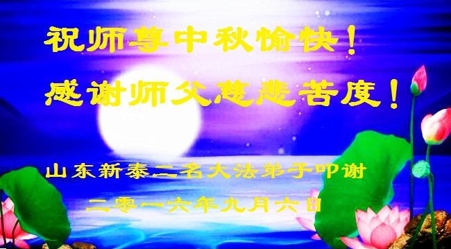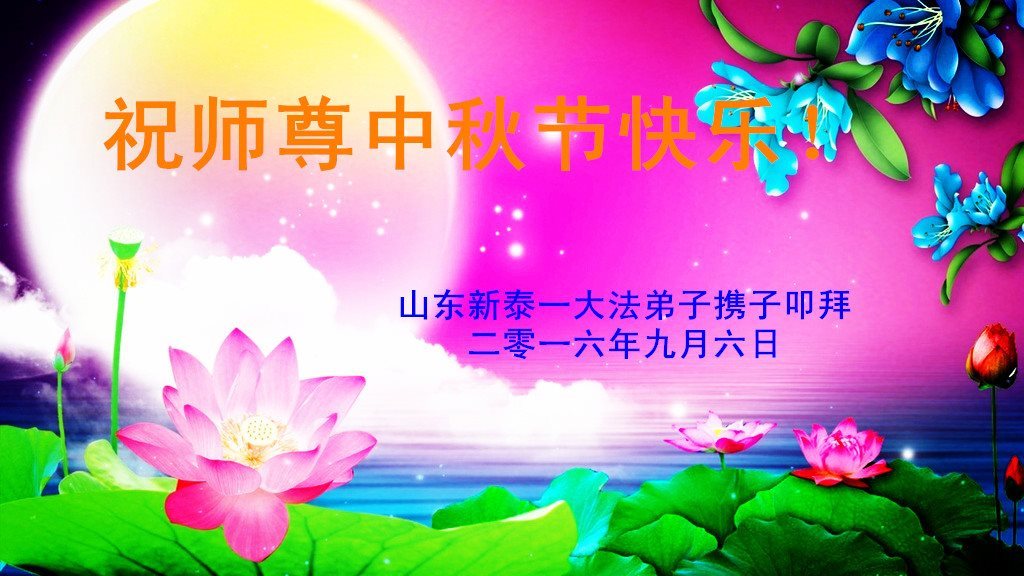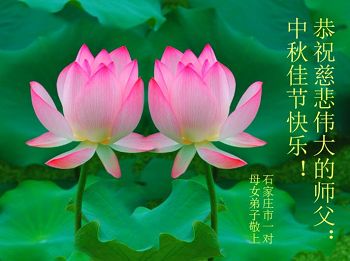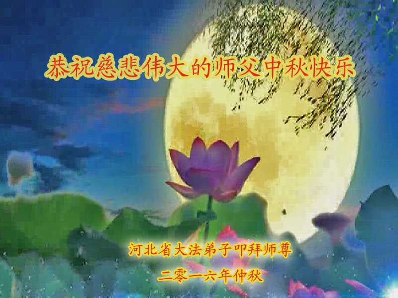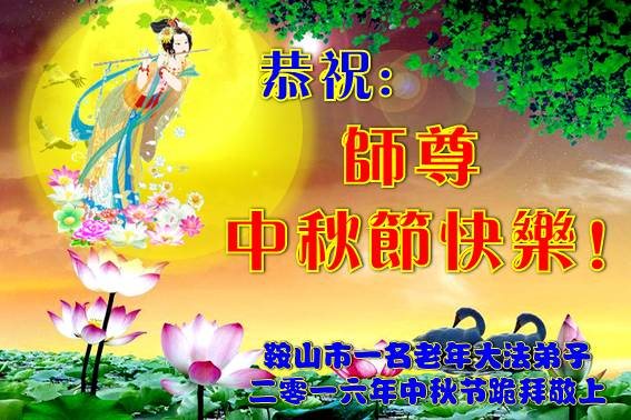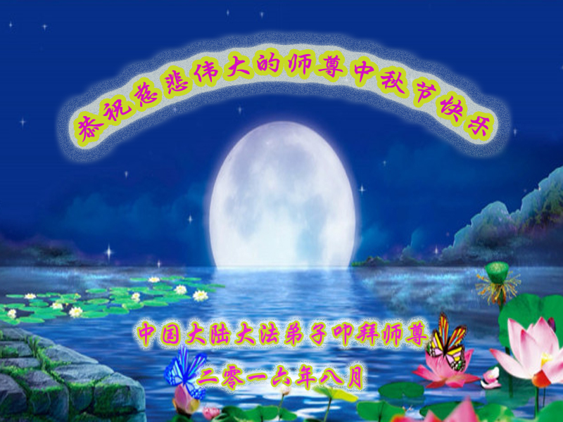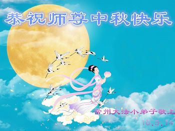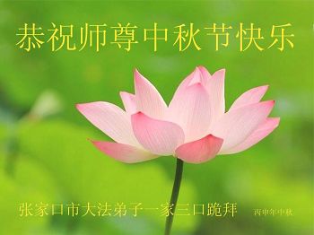 中秋节快到了,我和我得法三年,过去一字不识现在能看大法书学法,八十四的老母亲及明真相的妹妹恭祝师尊中秋节快乐!叩谢师恩,感恩师尊您的慈悲苦度。我们深知:没有恩师的救度,没有大法的传出,就没有我们的今天。