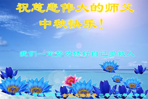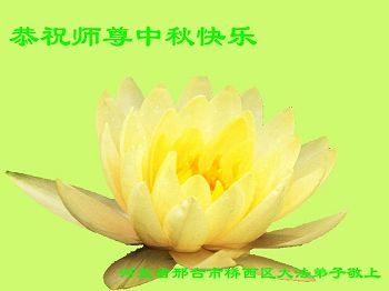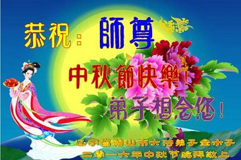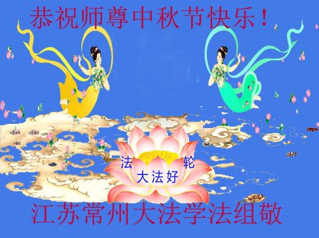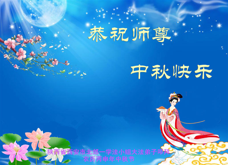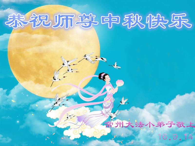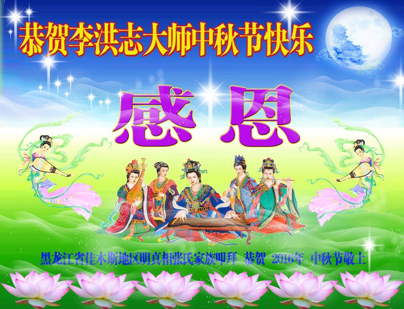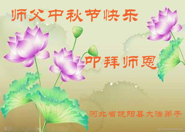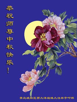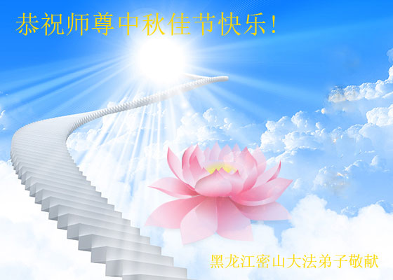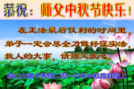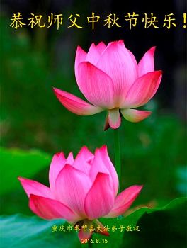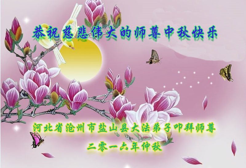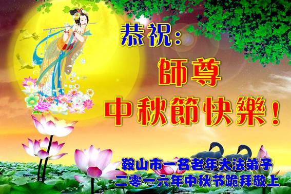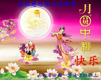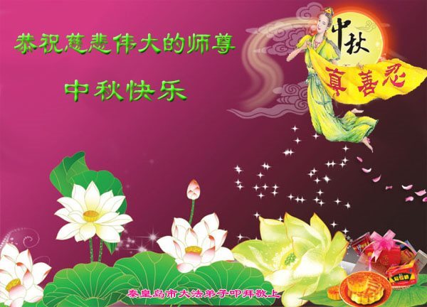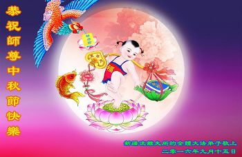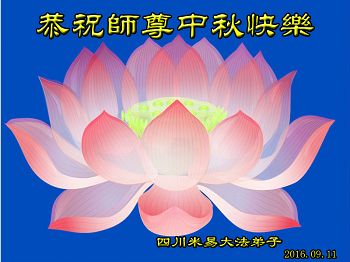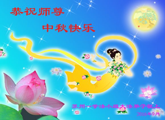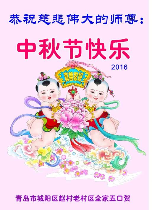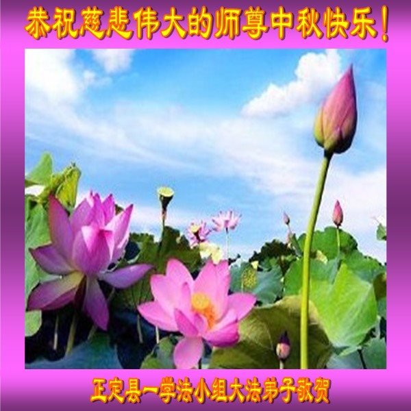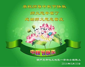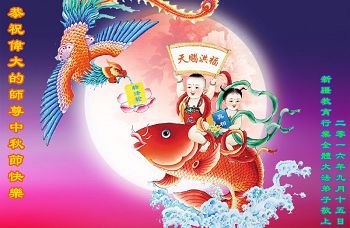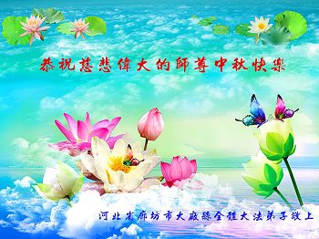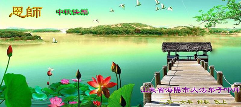 中秋节快到了,我和我得法三年,过去一字不识现在能看大法书学法,八十四的老母亲及明真相的妹妹恭祝师尊中秋节快乐!叩谢师恩,感恩师尊您的慈悲苦度。我们深知:没有恩师的救度,没有大法的传出,就没有我们的今天。
