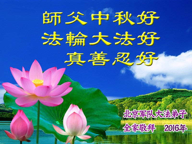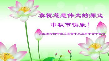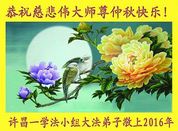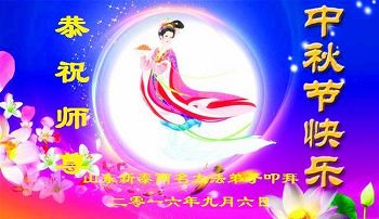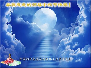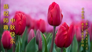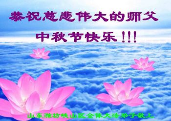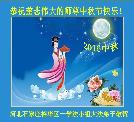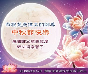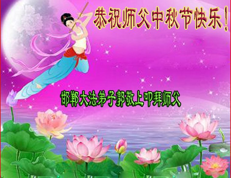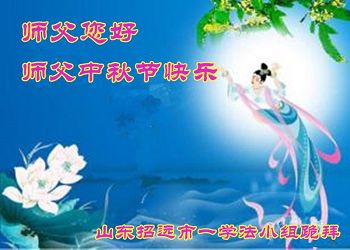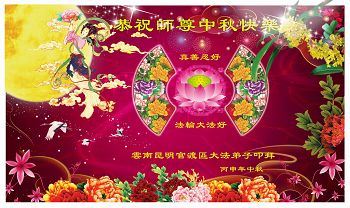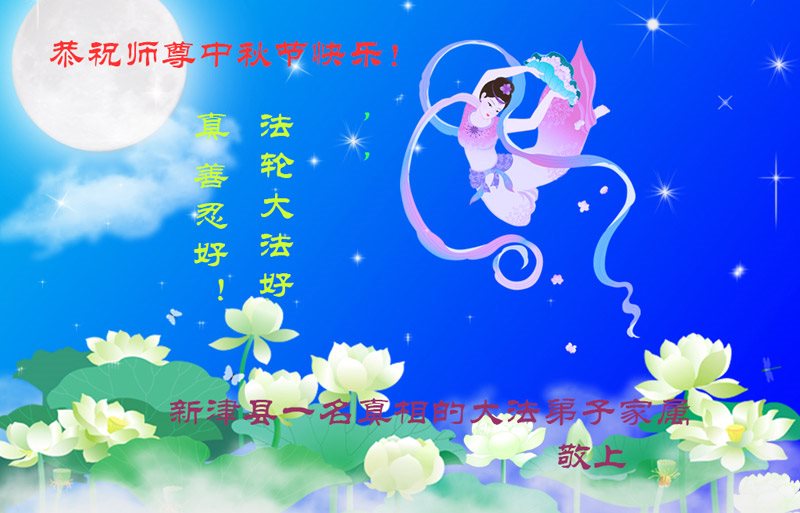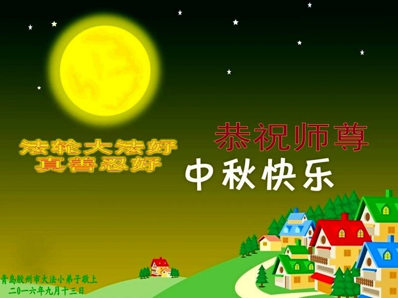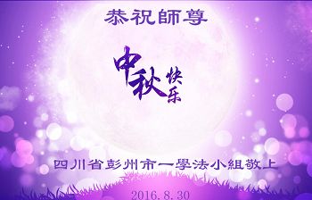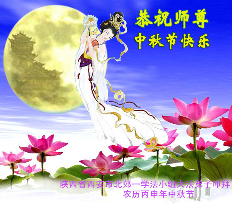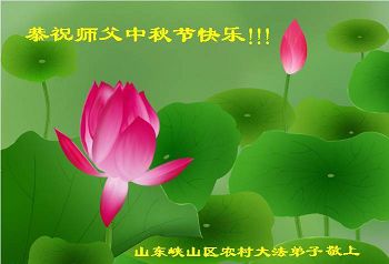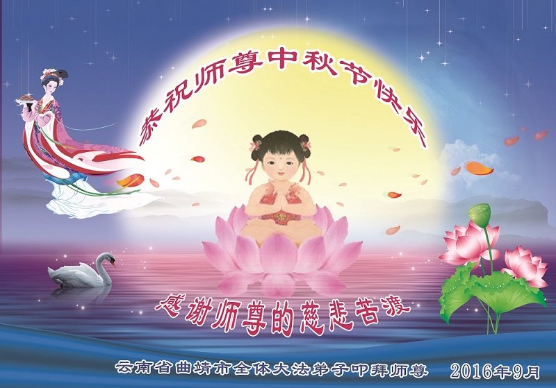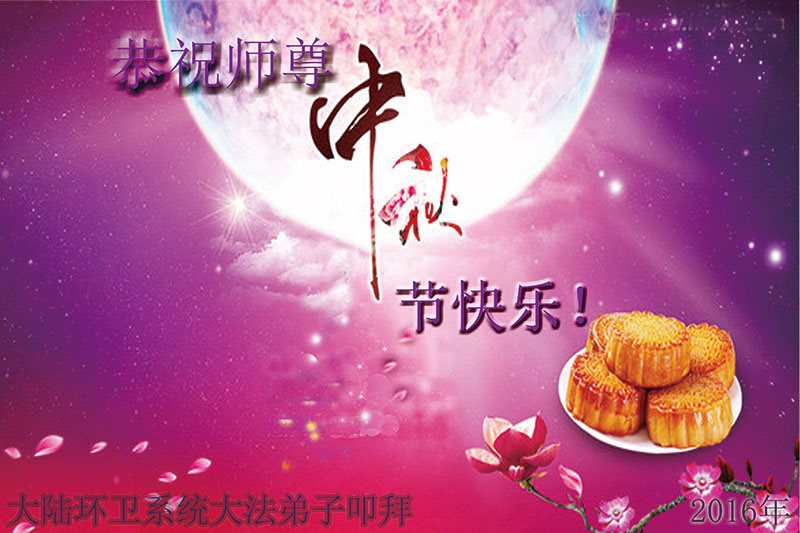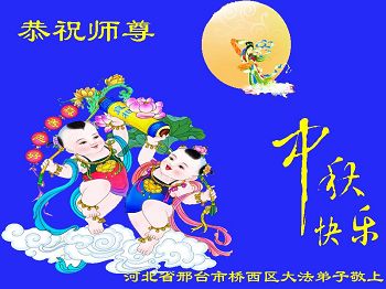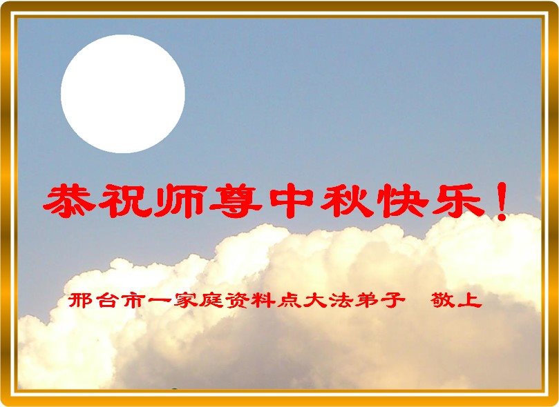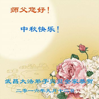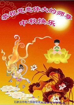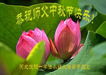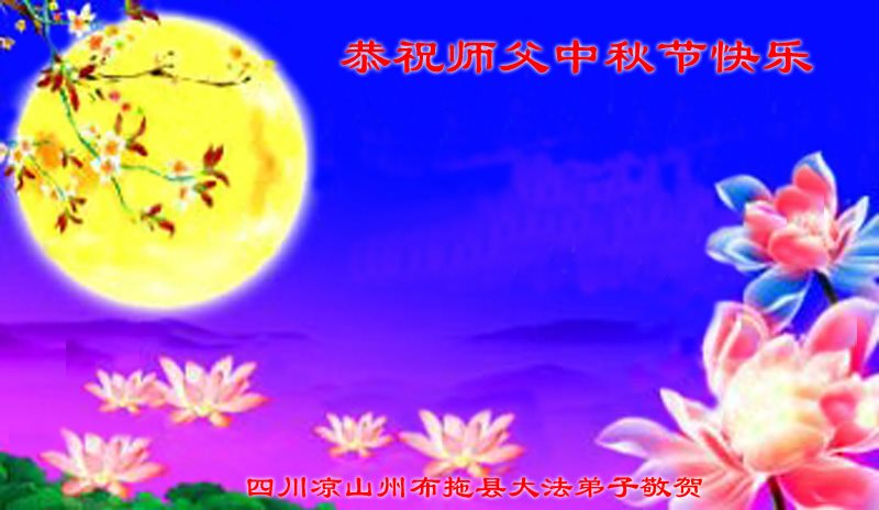中秋节快到了,我和我得法三年,过去一字不识现在能看大法书学法,八十四的老母亲及明真相的妹妹恭祝师尊中秋节快乐!叩谢师恩,感恩师尊您的慈悲苦度。我们深知:没有恩师的救度,没有大法的传出,就没有我们的今天。