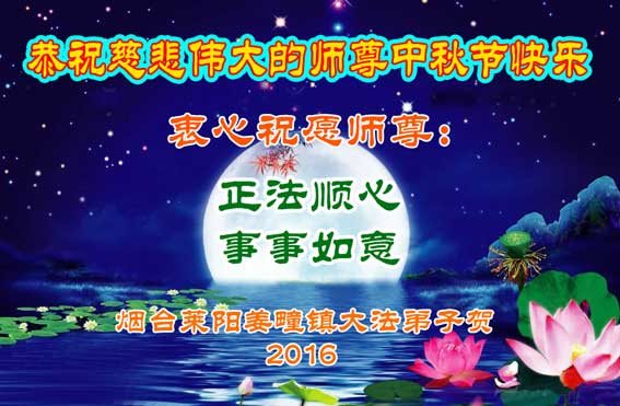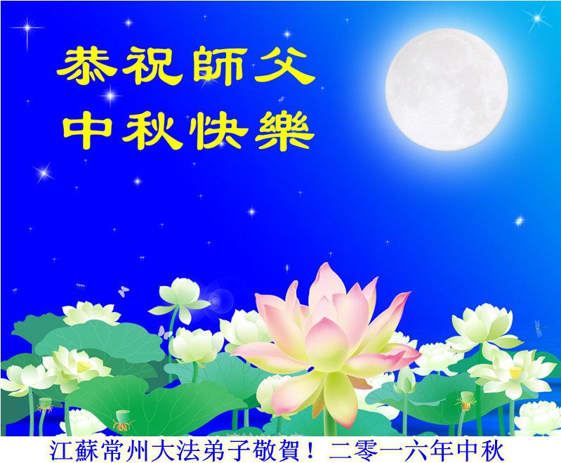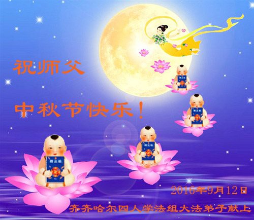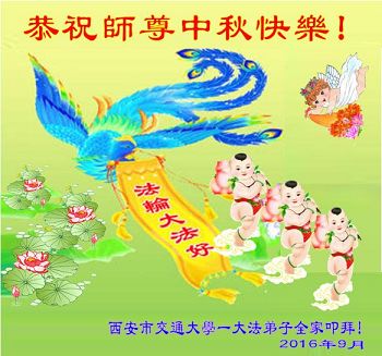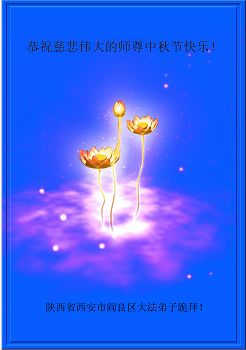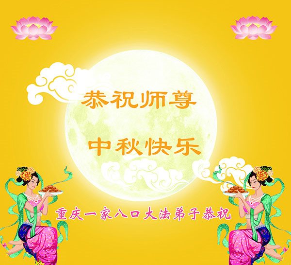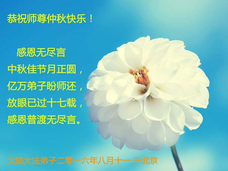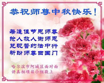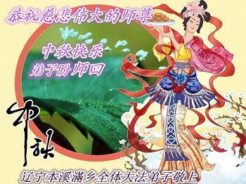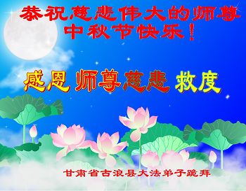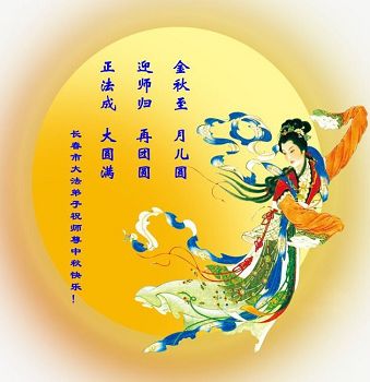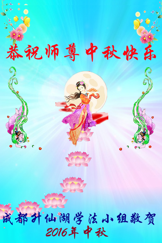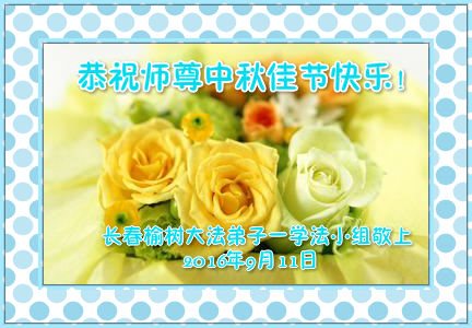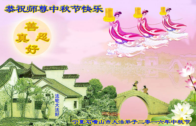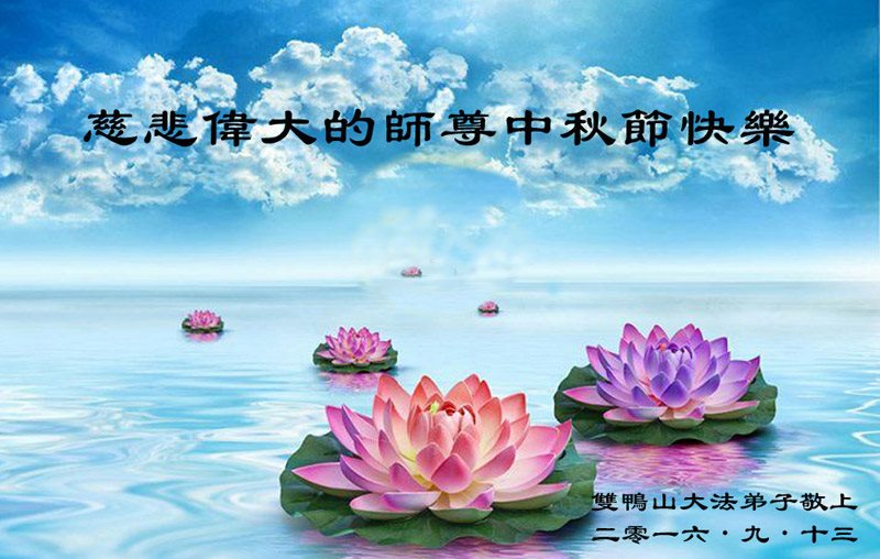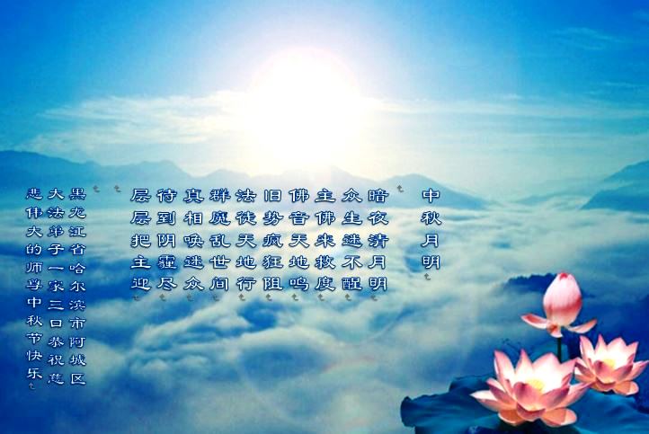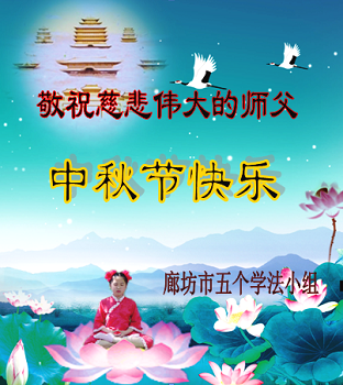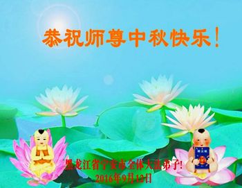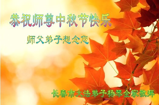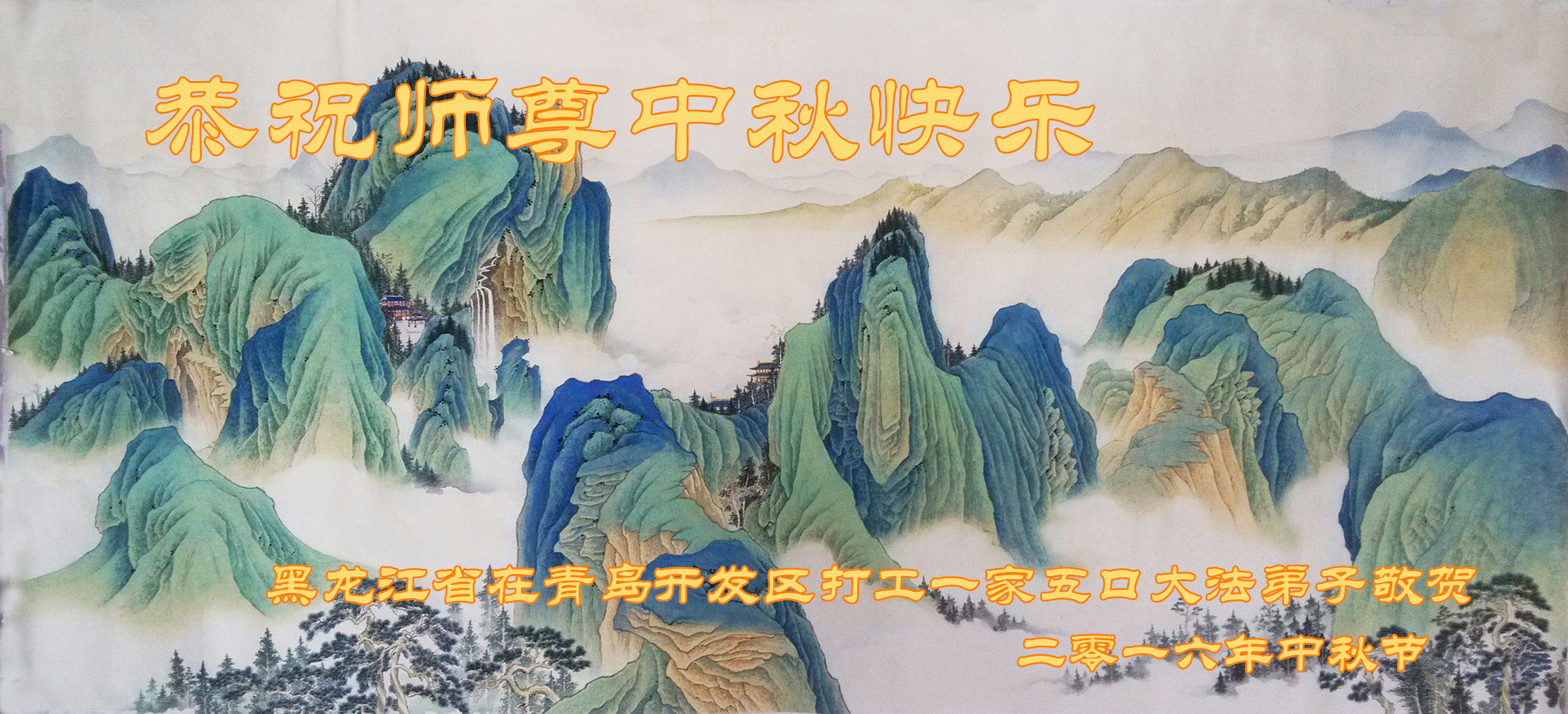 中秋节快到了,我和我得法三年,过去一字不识现在能看大法书学法,八十四的老母亲及明真相的妹妹恭祝师尊中秋节快乐!叩谢师恩,感恩师尊您的慈悲苦度。我们深知:没有恩师的救度,没有大法的传出,就没有我们的今天。