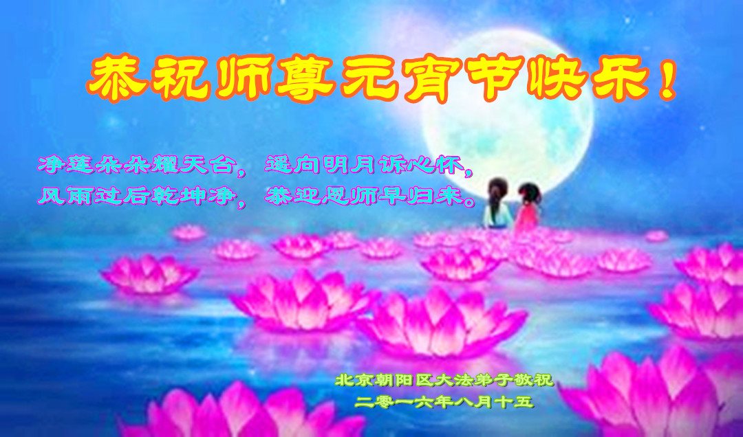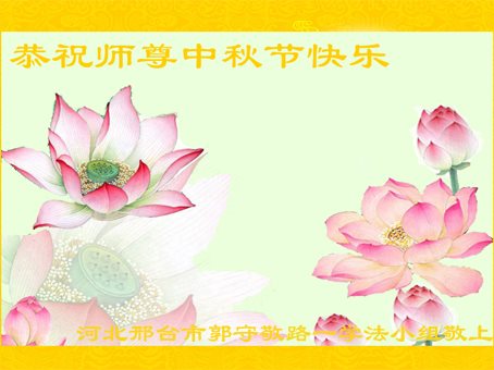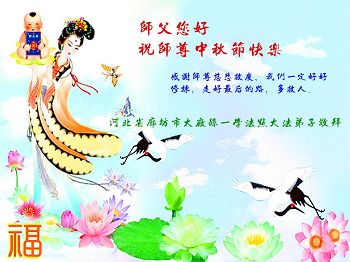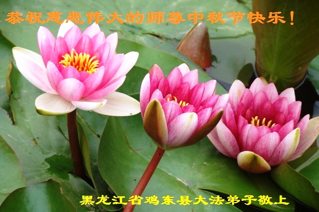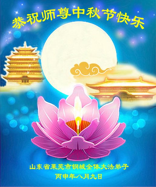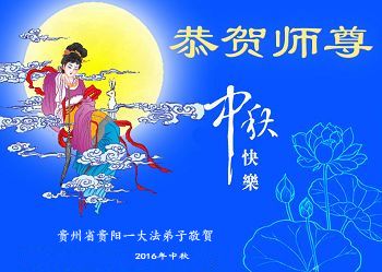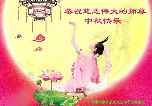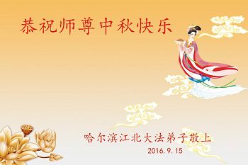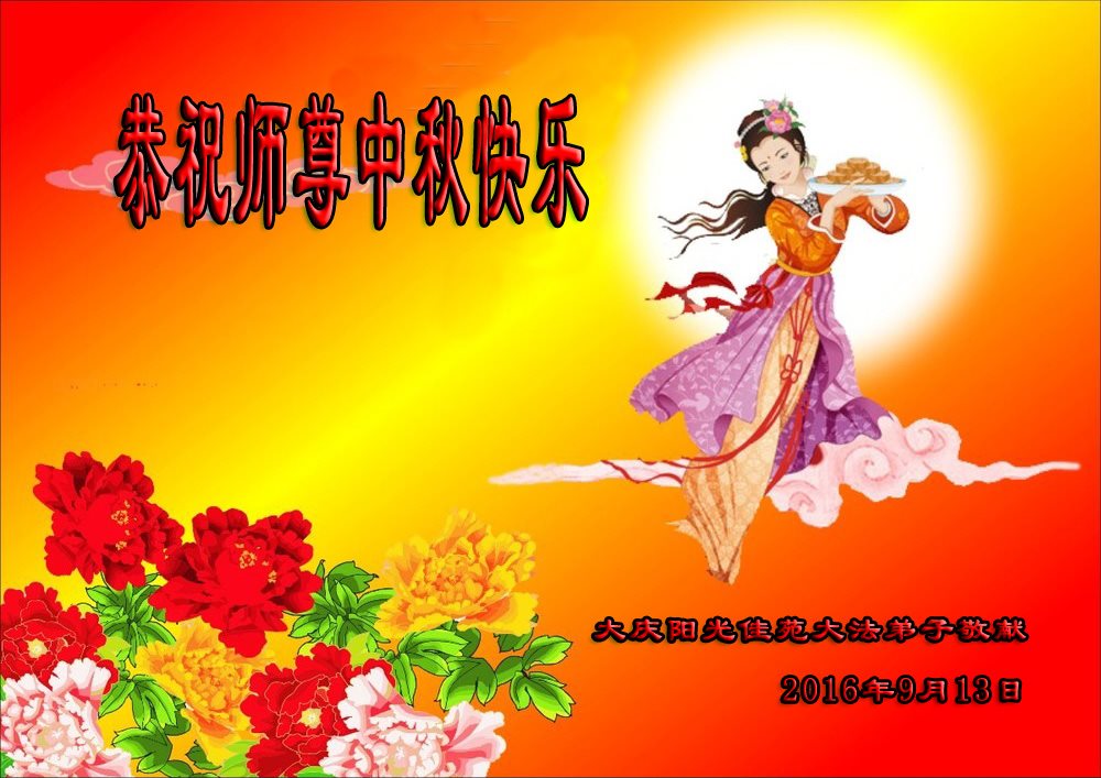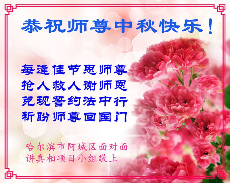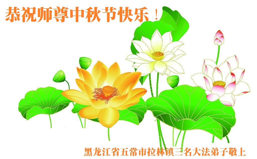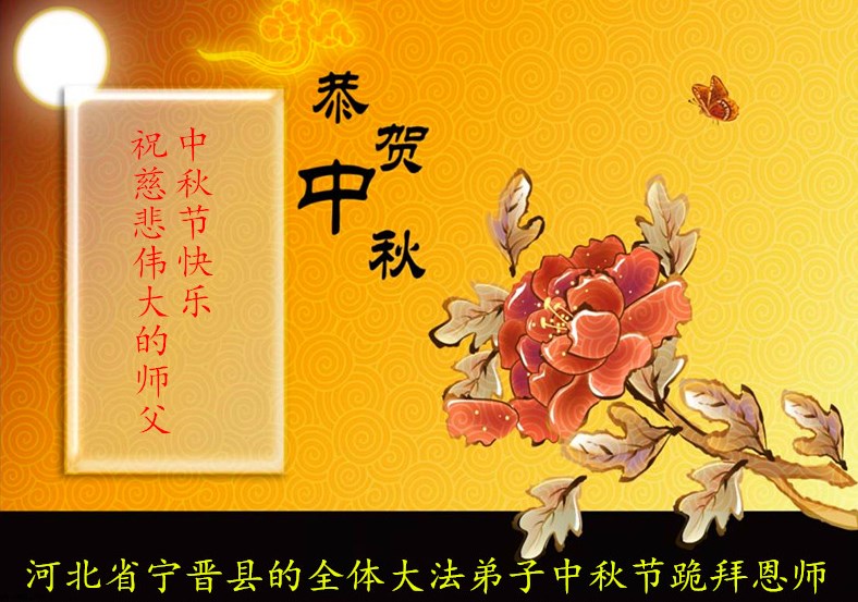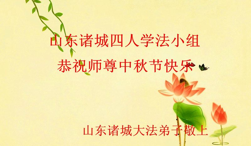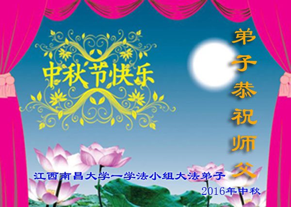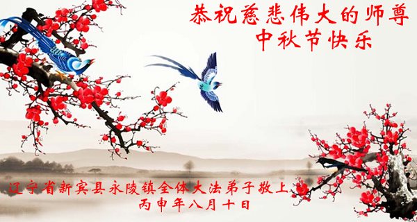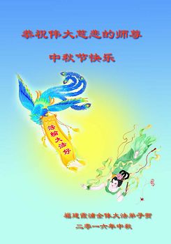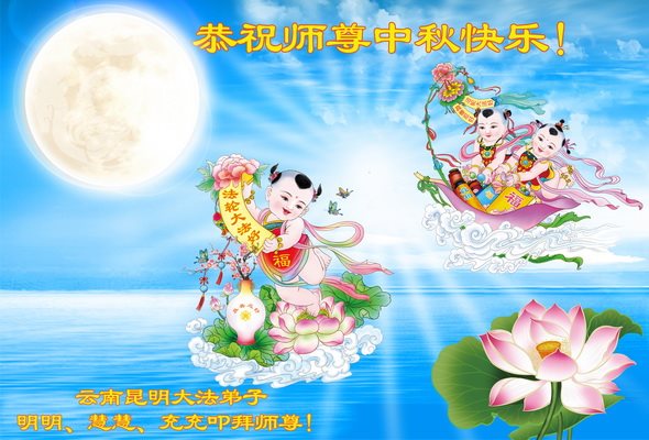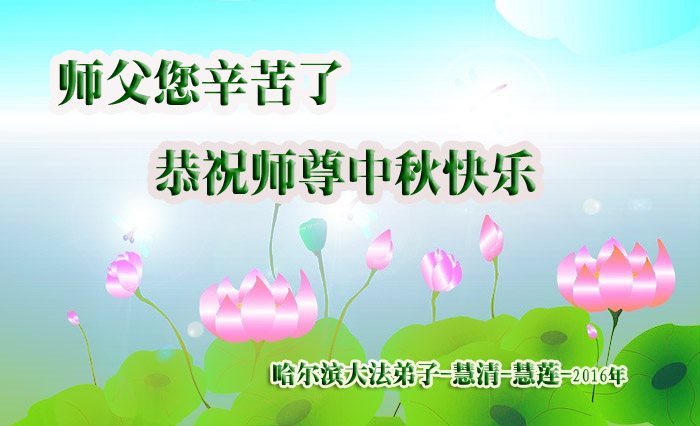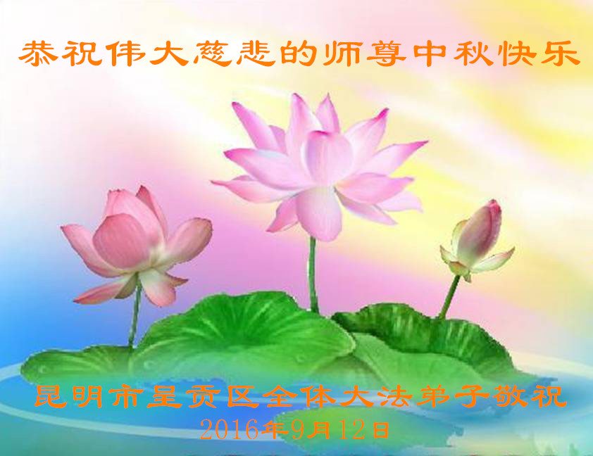 中秋节快到了,我和我得法三年,过去一字不识现在能看大法书学法,八十四的老母亲及明真相的妹妹恭祝师尊中秋节快乐!叩谢师恩,感恩师尊您的慈悲苦度。我们深知:没有恩师的救度,没有大法的传出,就没有我们的今天。