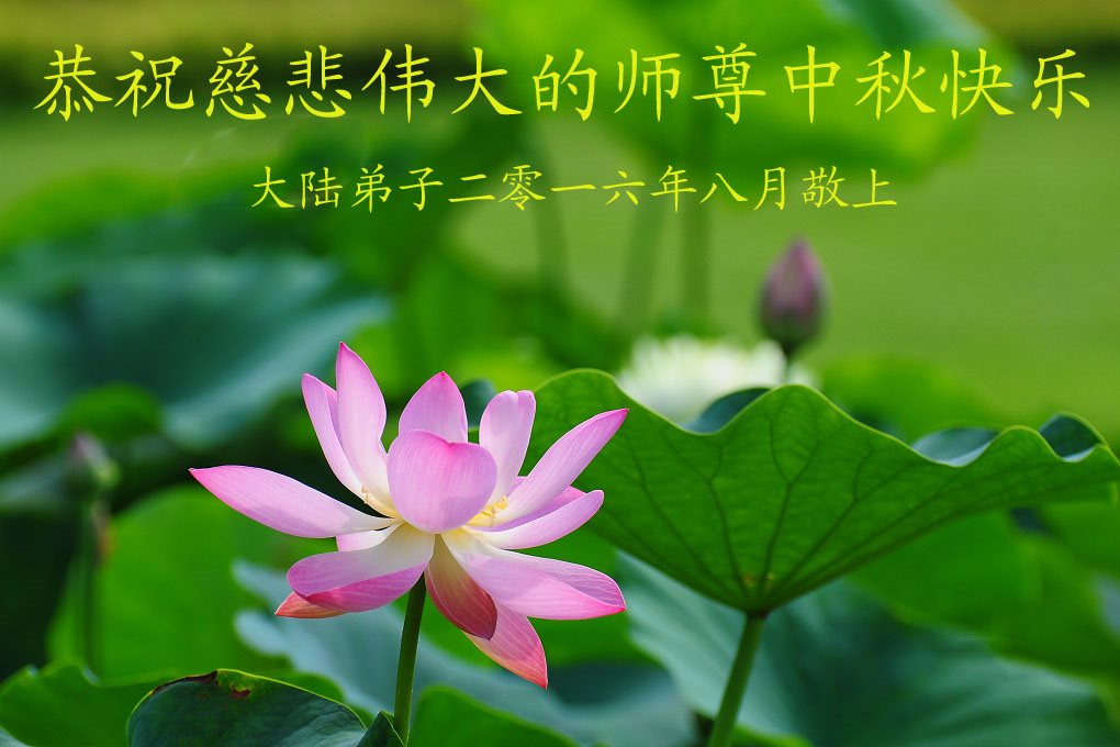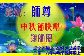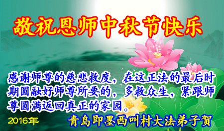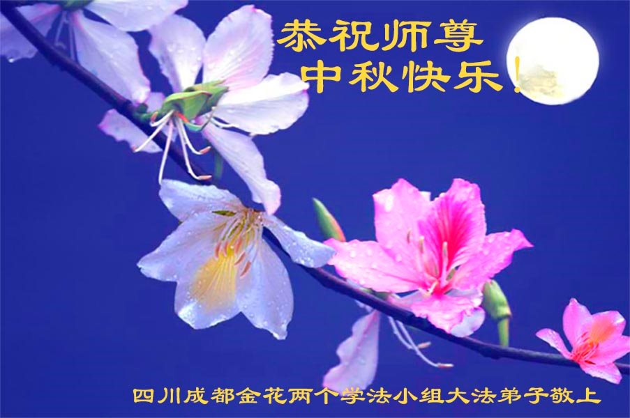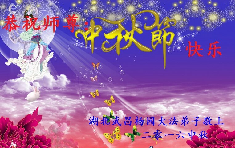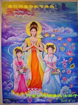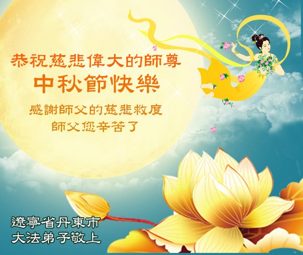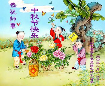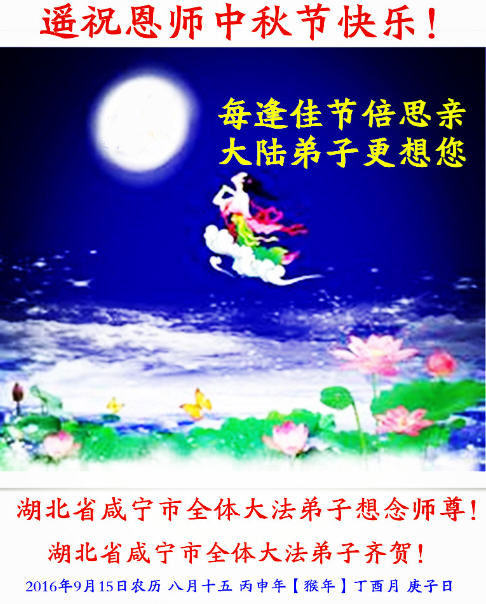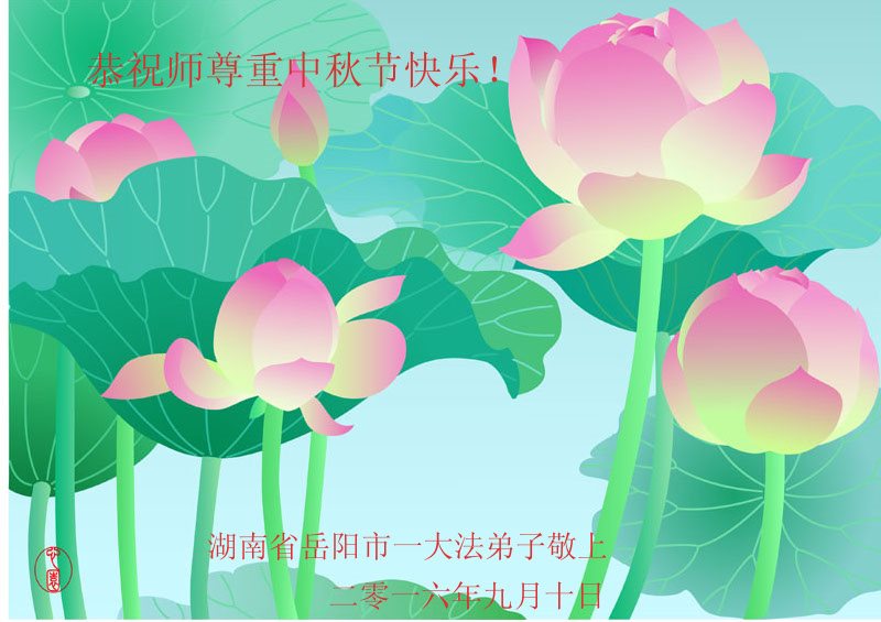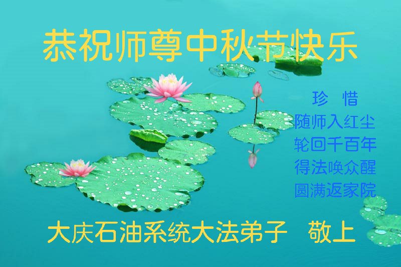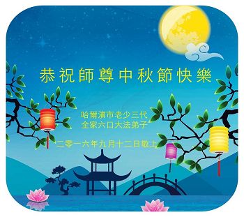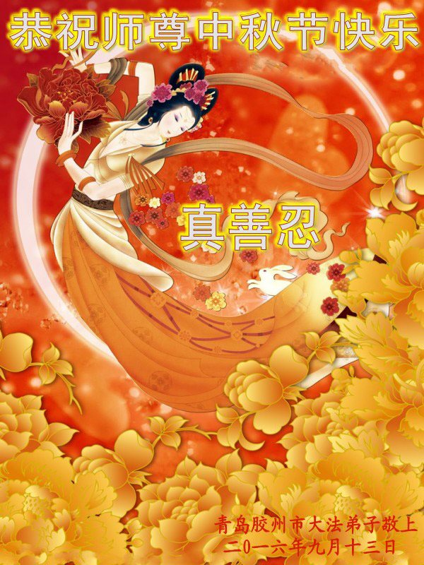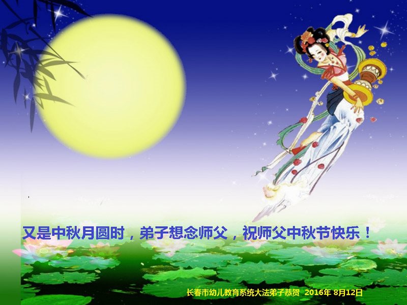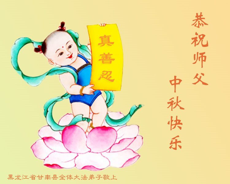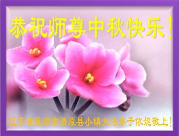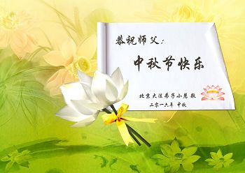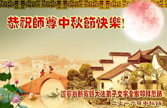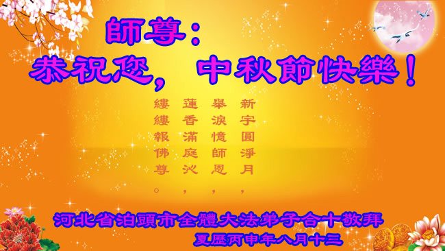 中秋节快到了,我和我得法三年,过去一字不识现在能看大法书学法,八十四的老母亲及明真相的妹妹恭祝师尊中秋节快乐!叩谢师恩,感恩师尊您的慈悲苦度。我们深知:没有恩师的救度,没有大法的传出,就没有我们的今天。