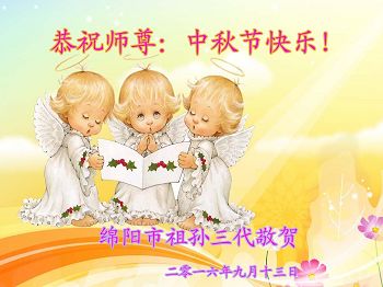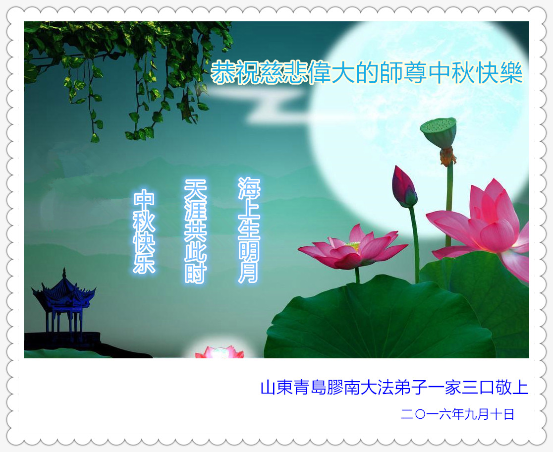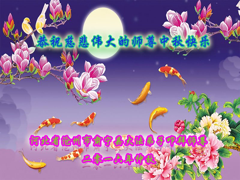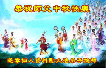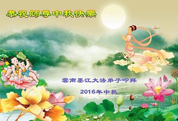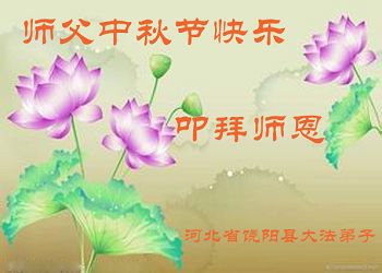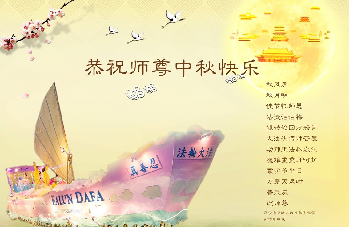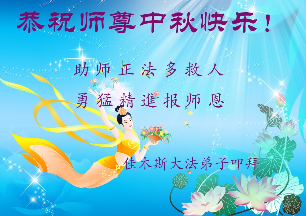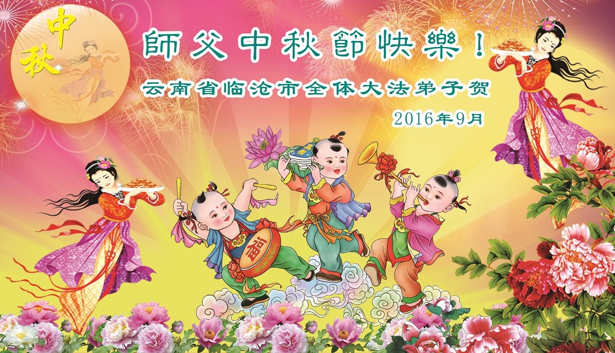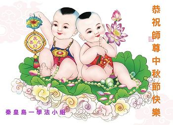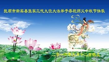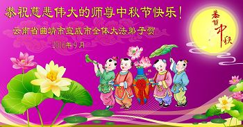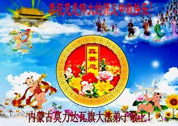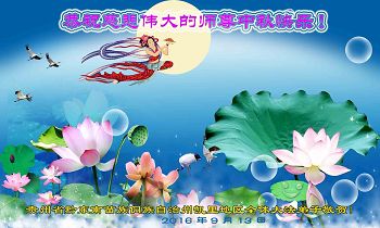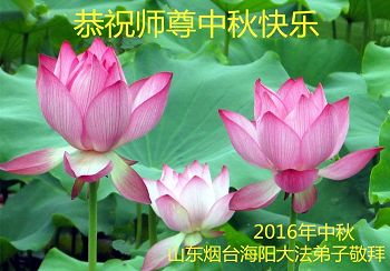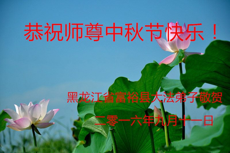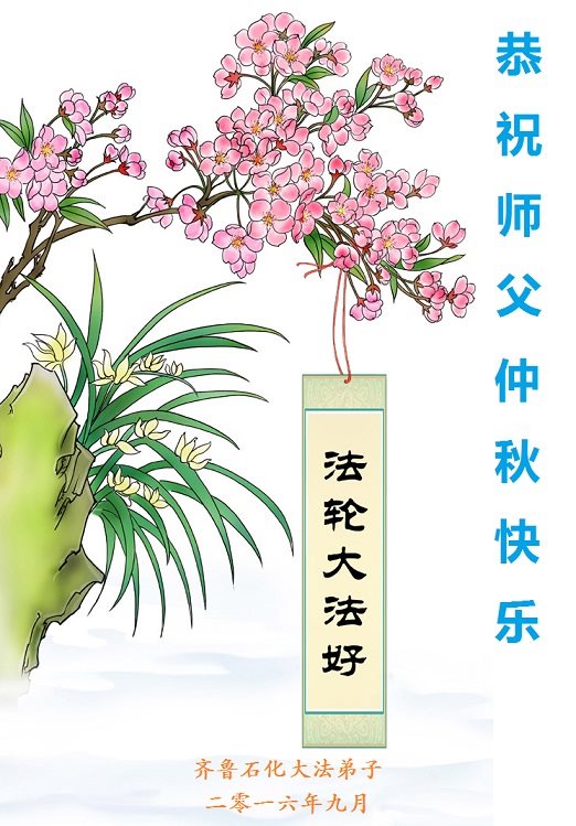 中秋节快到了,我和我得法三年,过去一字不识现在能看大法书学法,八十四的老母亲及明真相的妹妹恭祝师尊中秋节快乐!叩谢师恩,感恩师尊您的慈悲苦度。我们深知:没有恩师的救度,没有大法的传出,就没有我们的今天。