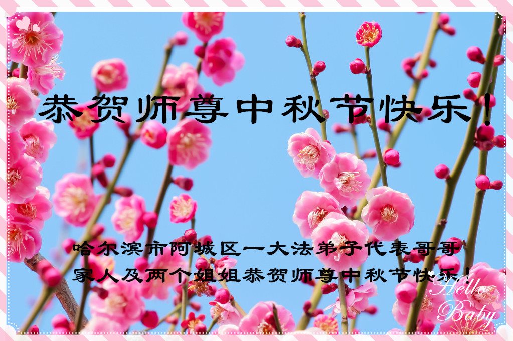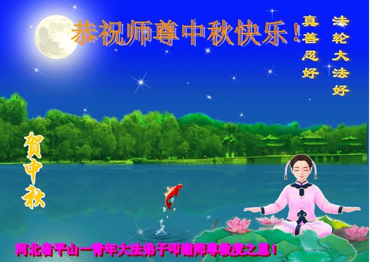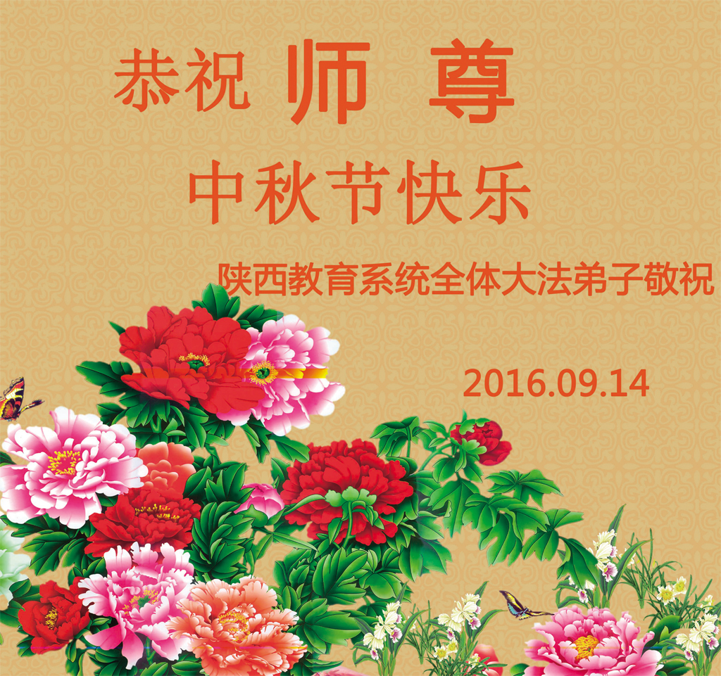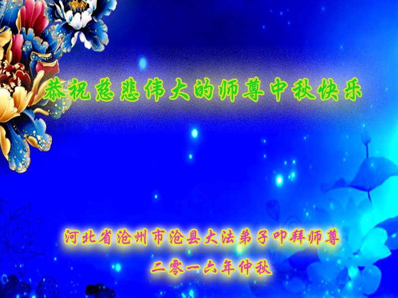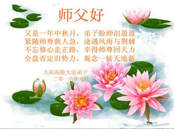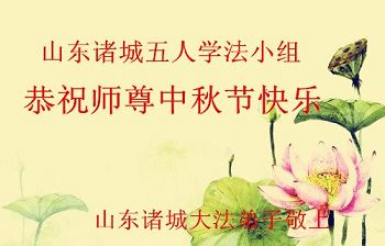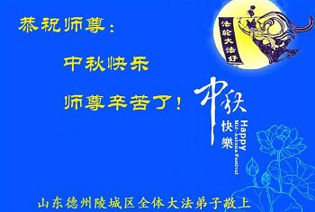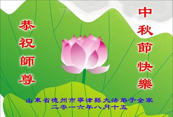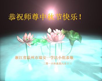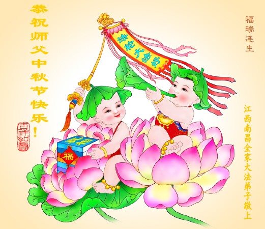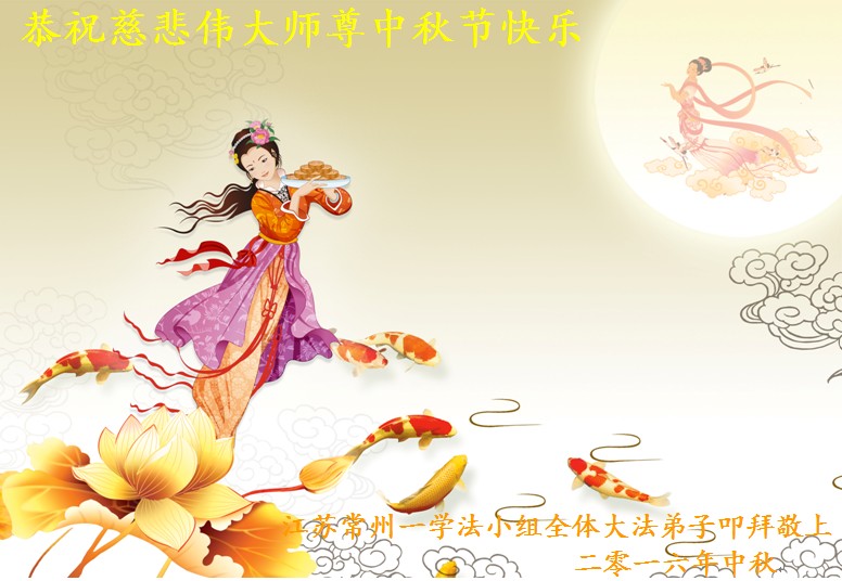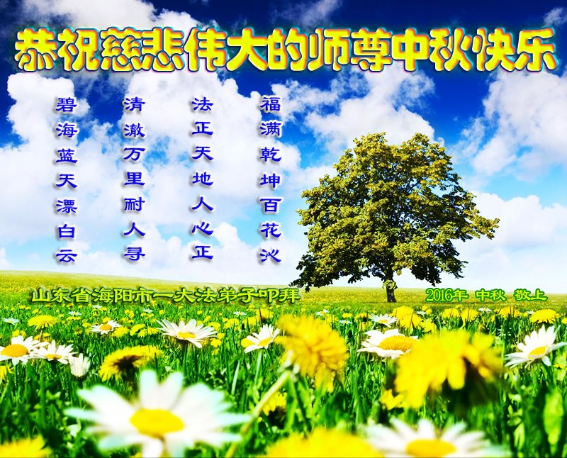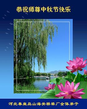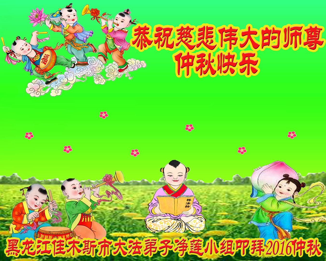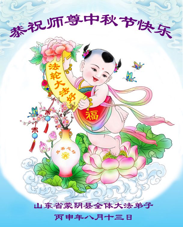 中秋节快到了,我和我得法三年,过去一字不识现在能看大法书学法,八十四的老母亲及明真相的妹妹恭祝师尊中秋节快乐!叩谢师恩,感恩师尊您的慈悲苦度。我们深知:没有恩师的救度,没有大法的传出,就没有我们的今天。