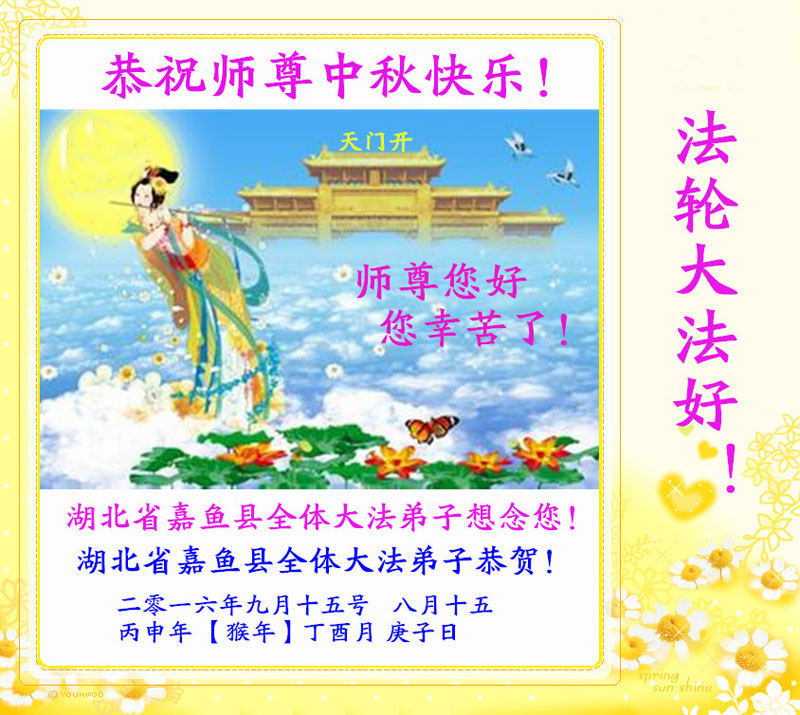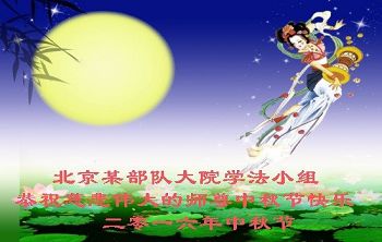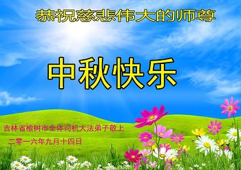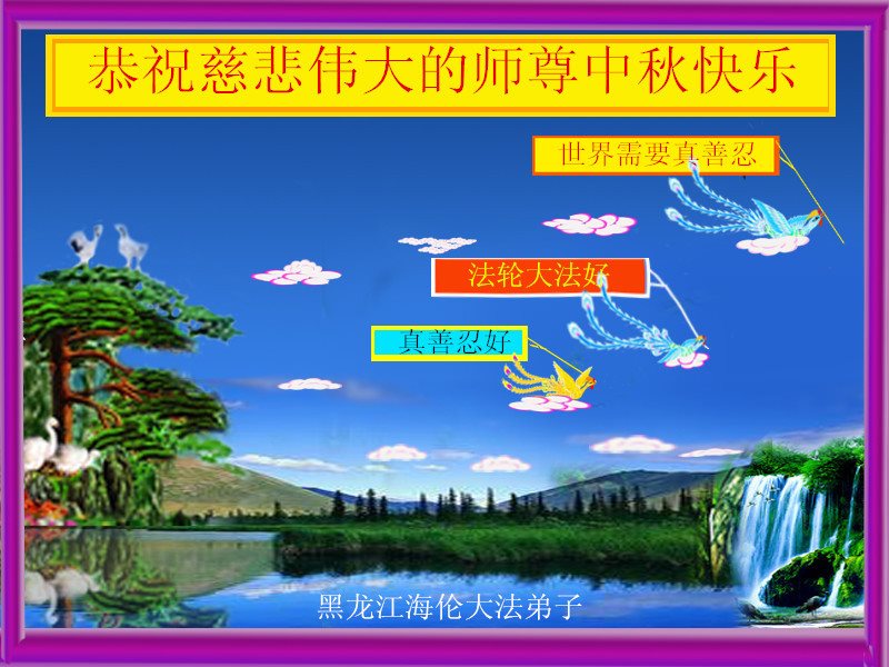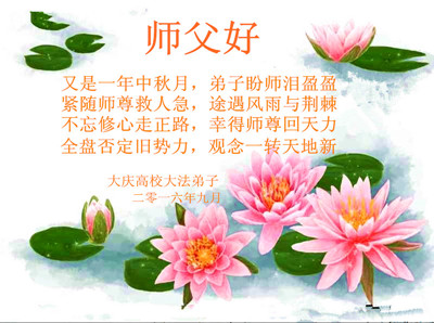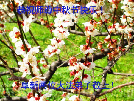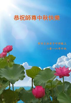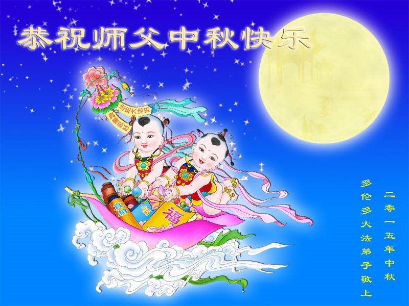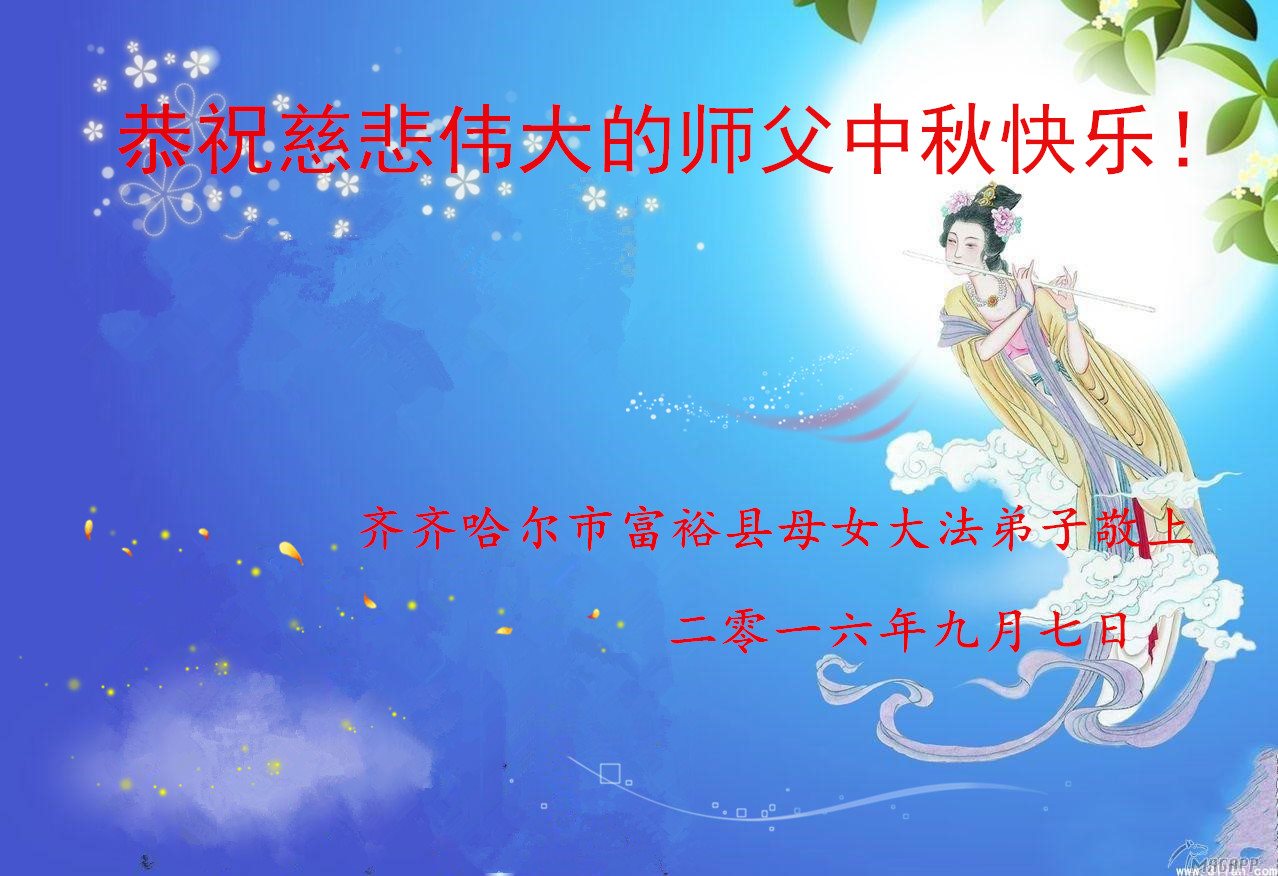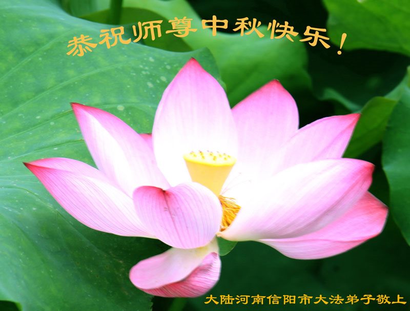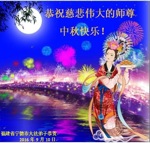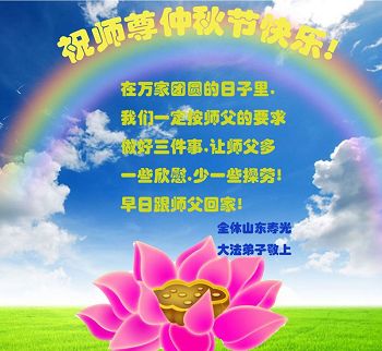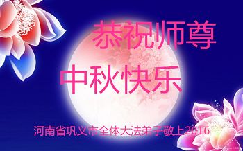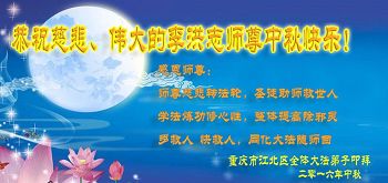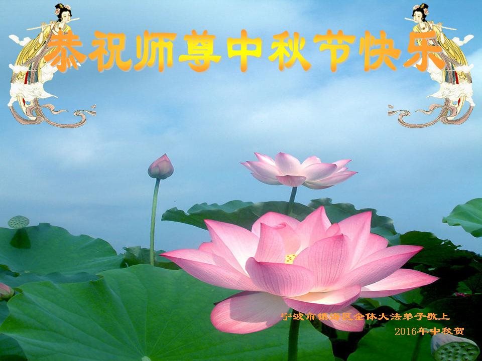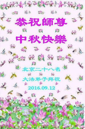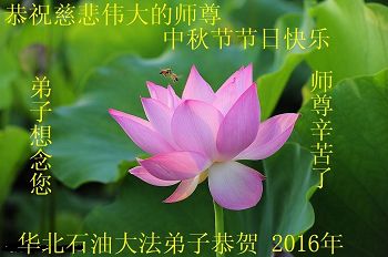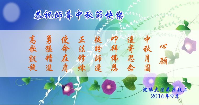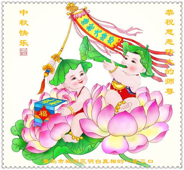中秋节快到了,我和我得法三年,过去一字不识现在能看大法书学法,八十四的老母亲及明真相的妹妹恭祝师尊中秋节快乐!叩谢师恩,感恩师尊您的慈悲苦度。我们深知:没有恩师的救度,没有大法的传出,就没有我们的今天。