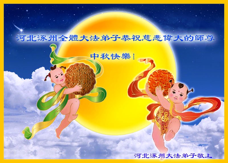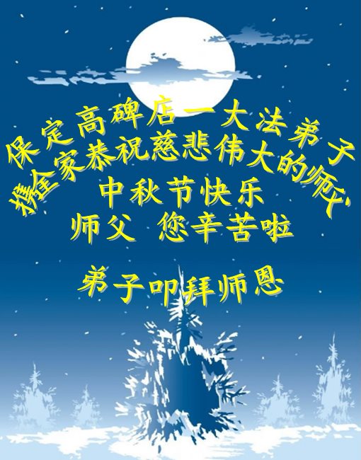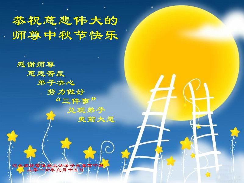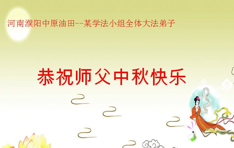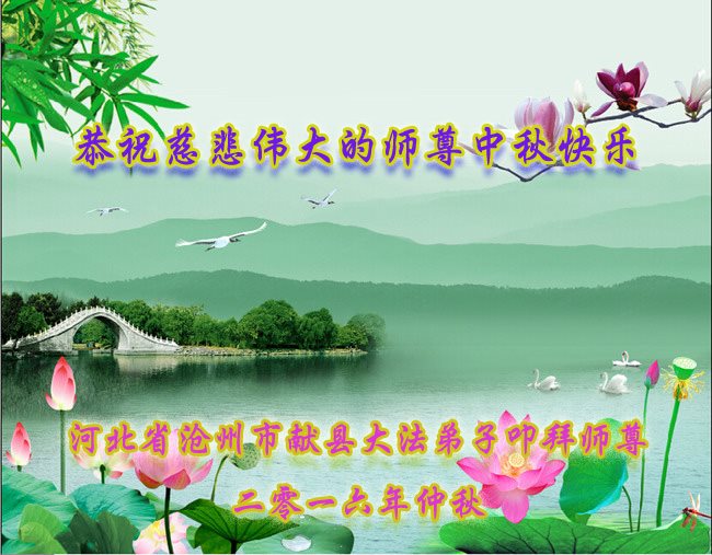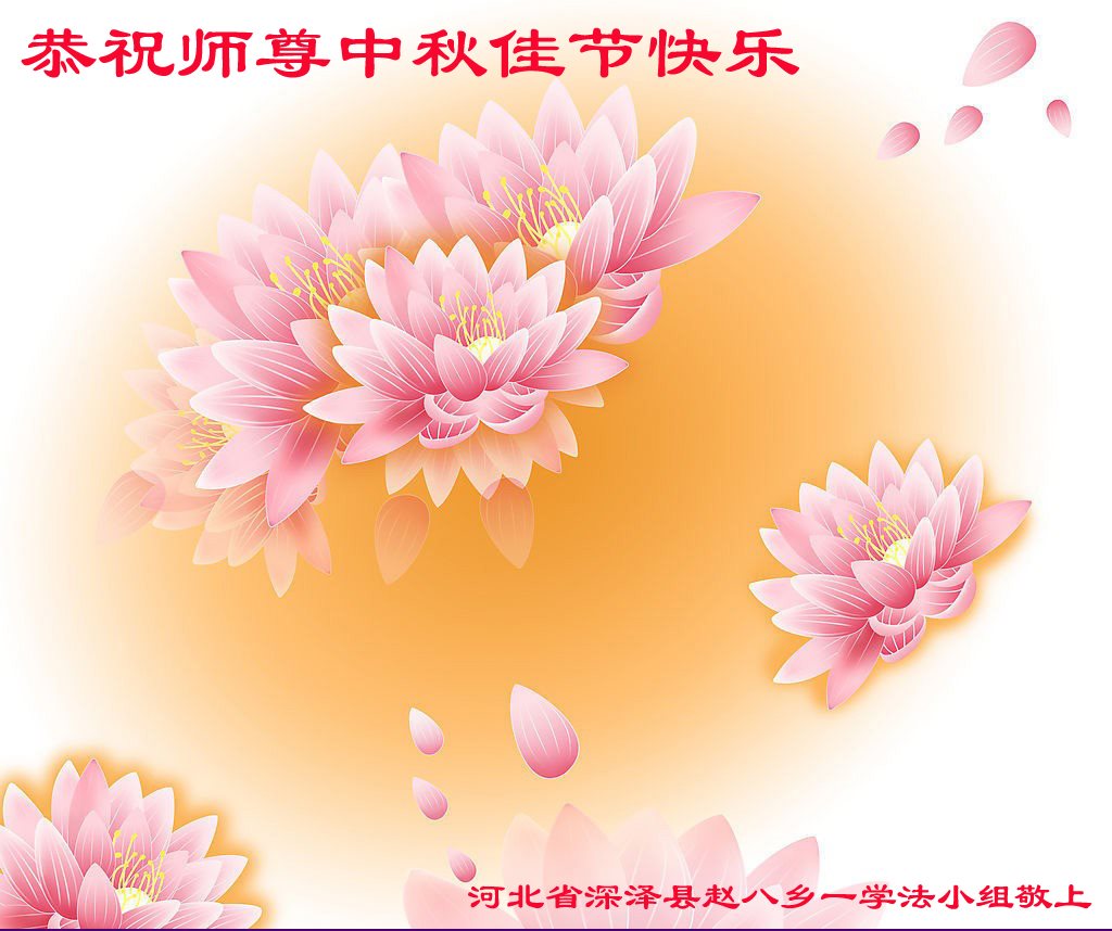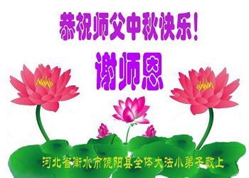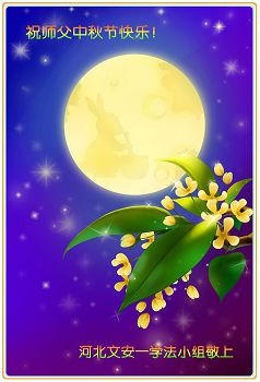 河北保定满城区农村一学法小组大法弟子及明真相的家人恭祝慈悲伟大的师父中秋节快乐!