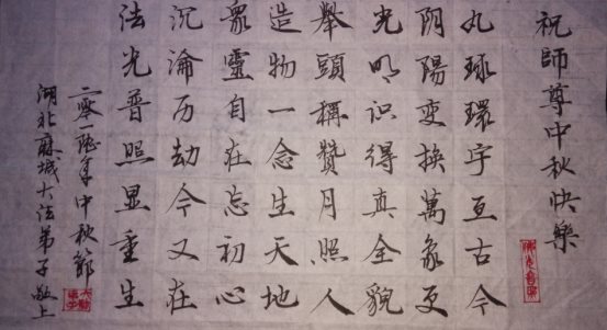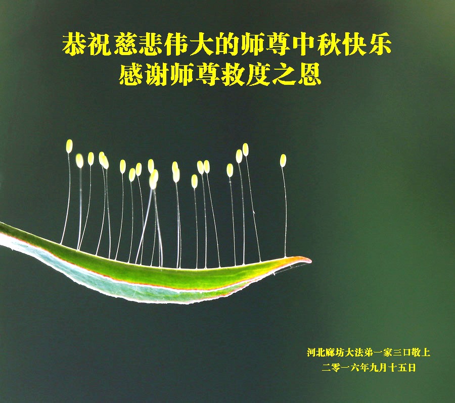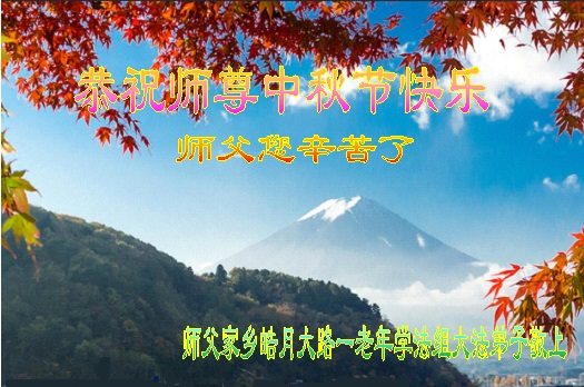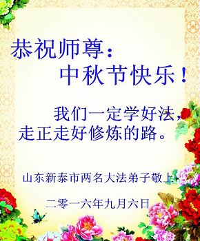 师父辛苦了!在往后的修炼道路上,弟子一定谨记自己正法时期大法弟子的身份和使命,做好三件事,修去所有人心和执着,堂堂正正随师还。家里明白真相的亲人也祝师父中秋节快乐!