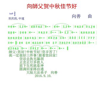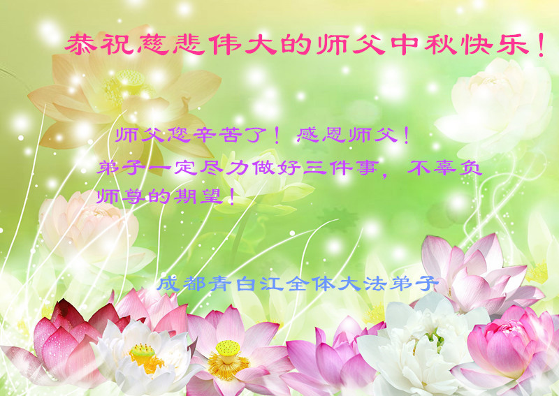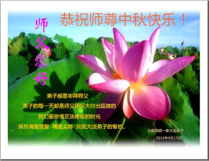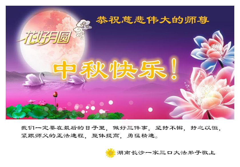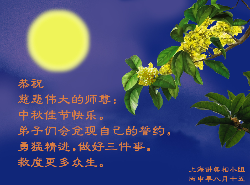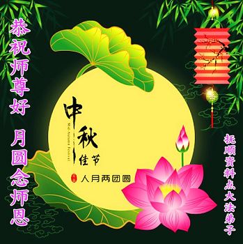 在中秋佳节到来之际,弟子真诚感谢师尊对弟子及明真相的女儿的慈悲呵护与救度!弟子唯有做好三件事,在法中精進再精進,报答师恩。