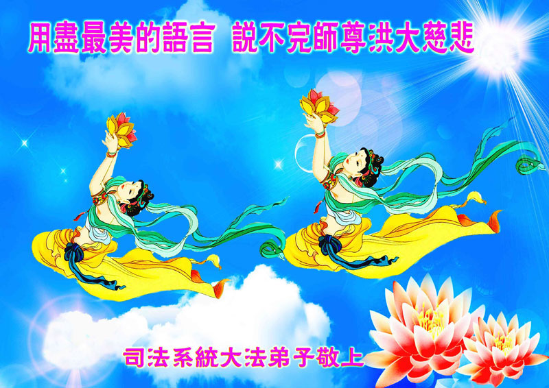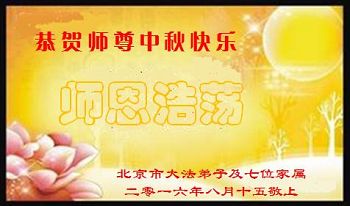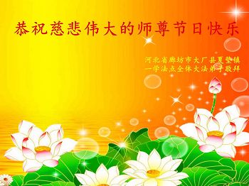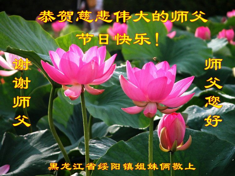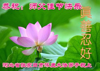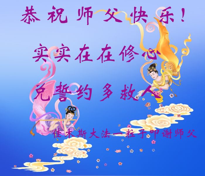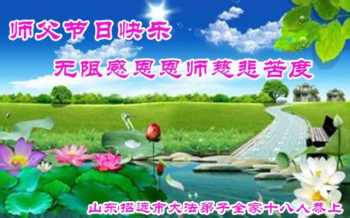 尊敬的李大师您好!在此佳节之际,我们携亲朋好友,向慈悲伟大的李大师致以崇高的谢意!感谢您慈悲救度!感谢您的弟子,是他们不辞辛劳的向世人传递着大法真相,才使我们看清了中共的邪恶。天灭中共在即,奉劝世人一定要珍惜这个机会,要想保命就要与中共邪党划清界限,“三退”才能保平安!并且也要偕同大法弟子把迫害法轮功的元凶绳之以法,还人间公道,让正义长存。得救的生命再次跪谢李大师救度大恩!您们师徒真的太辛苦了!