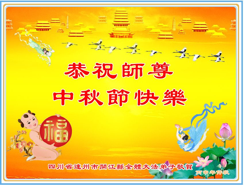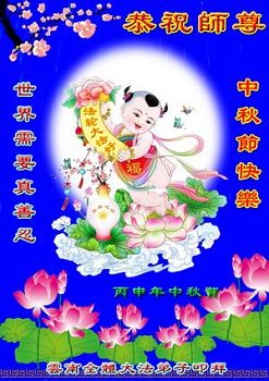 四川省成都市邛崃市明真相的世人恭贺法轮功师父中秋快乐!