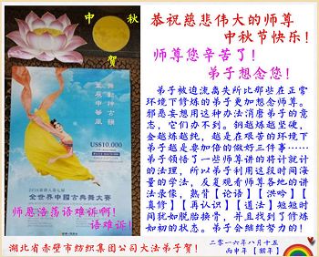 安徽安庆市大法弟子祝师尊中秋快乐!