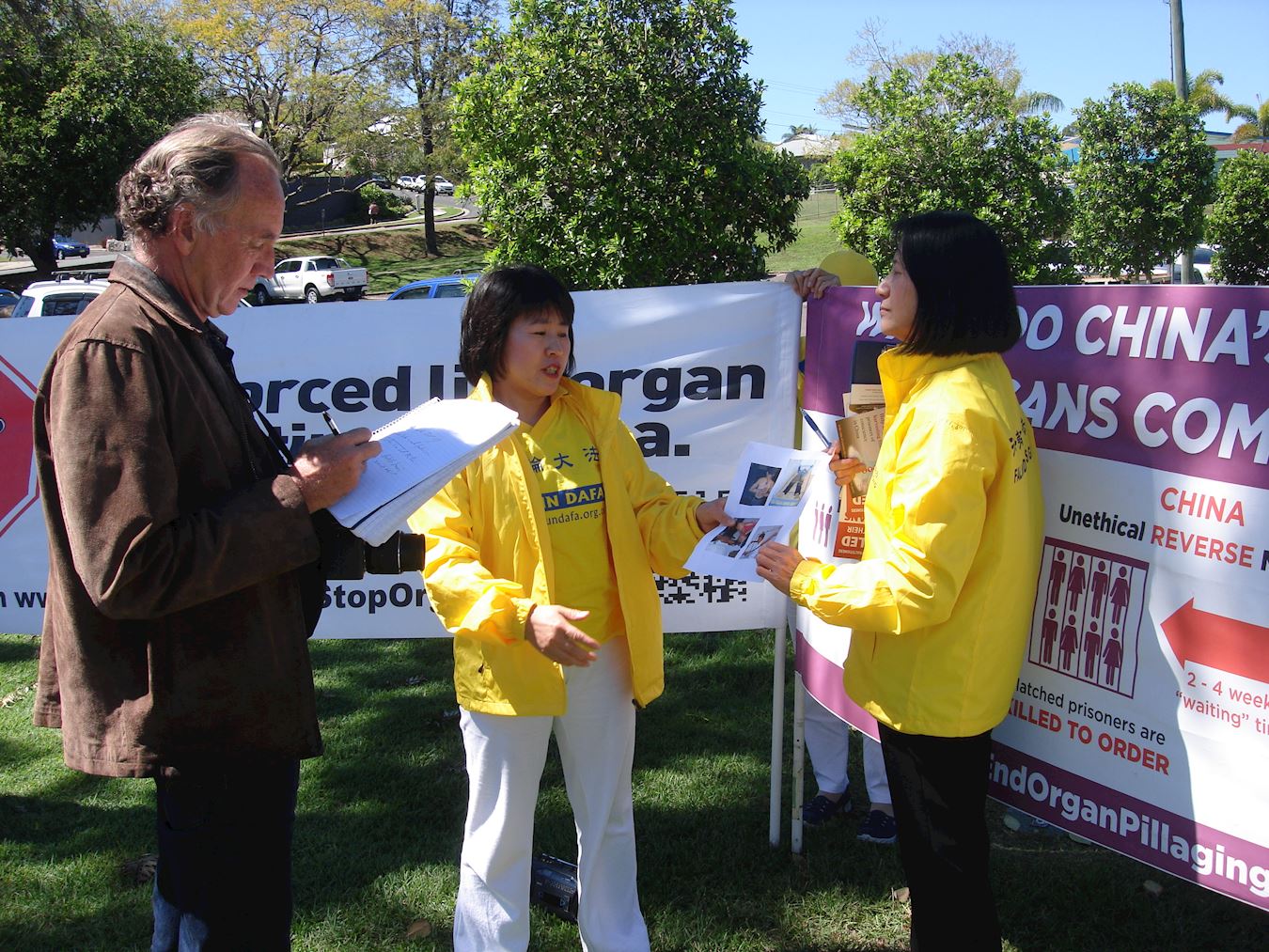 当地媒体(Stanthrope Border Post)对学员进行了采访,对“活摘器官”的罪行表示极大关注。很多过往行人纷纷拿取真相传单,并在反活摘征签簿上签名。有的还说,“我们在媒体上看到过关于法轮功受(中共)迫害的消息,在哪儿签名?我们要签名支持法轮功。”