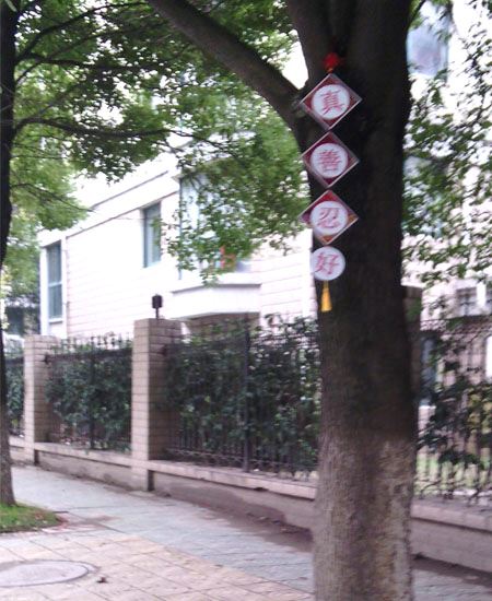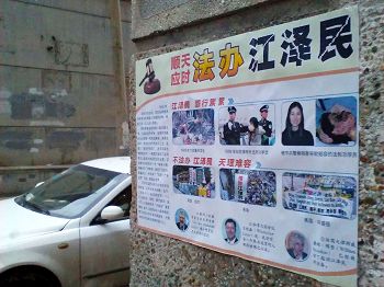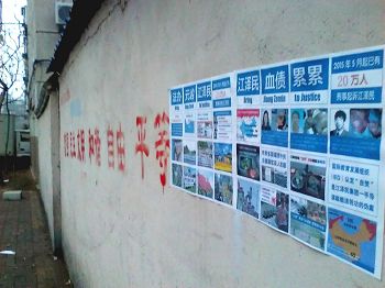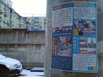 辽宁省沈阳市居民区的海报传播法轮功真相