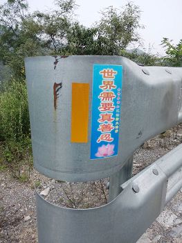 一次,一名法轮功学员在一条市级公路上行走,看到清扫公路两边杂草的工人正在忙碌的干活,就在他们身边的电杆上贴着“法轮大法好”的条幅,这名学员停下电车,问他们:你们清理公路不管电杆上的标语啊?他们回答:人们都说谁撕法轮功的标语谁不好,我们现在都不管这个。通过法轮功学员们讲真相,确实有很多善良民众明白了,不再做撕毁大法真相的条幅和不干胶的事情了。