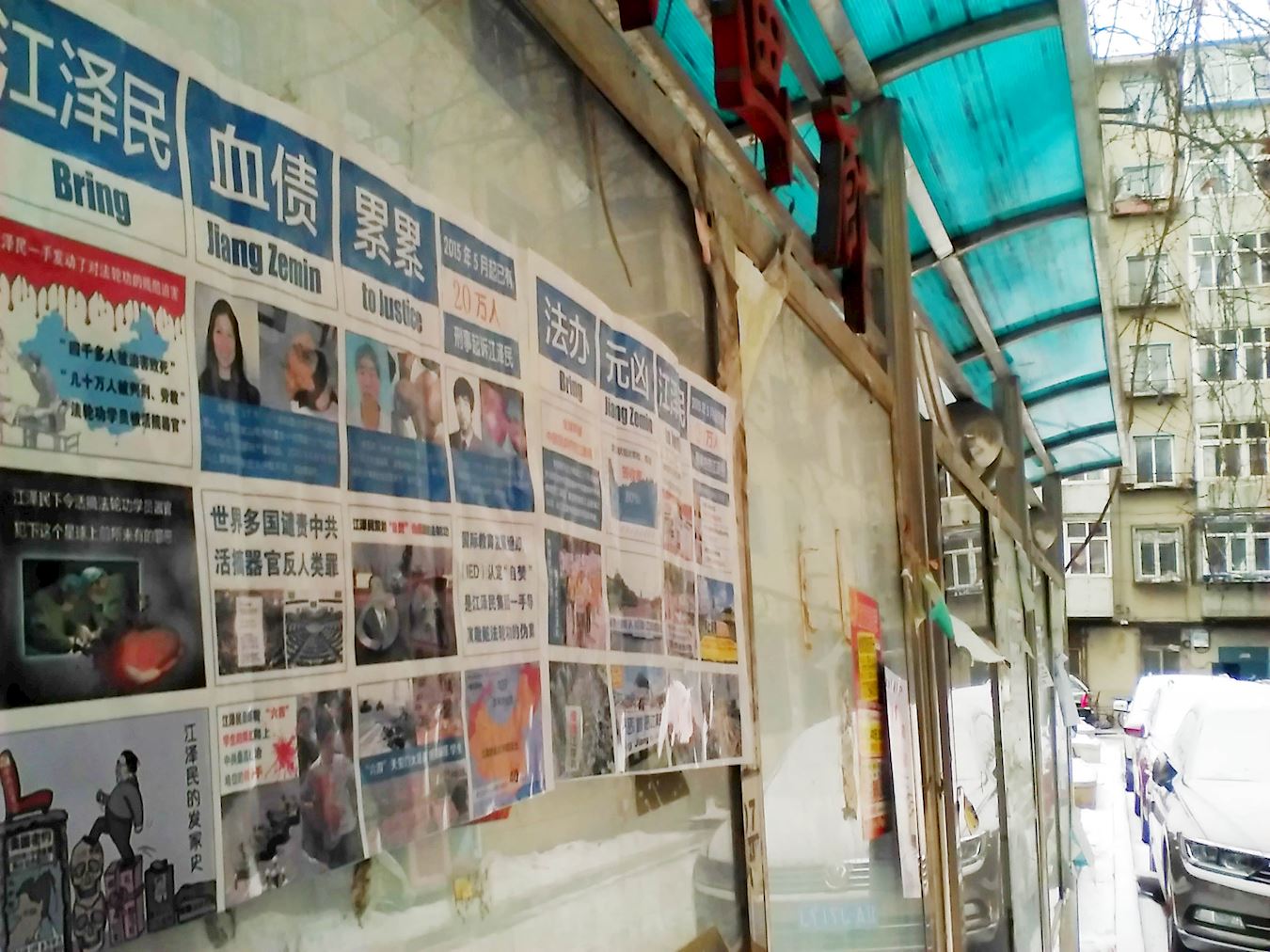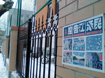 • 辽宁省沈阳市居民区的海报传播法轮功真相