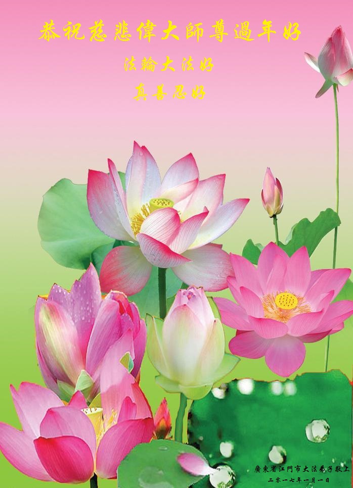 感恩师尊慈悲苦度 在新的一年里 弟子们会更加勇猛精進 紧随师尊的正法進程 合十 广东省江门市全体大法弟子