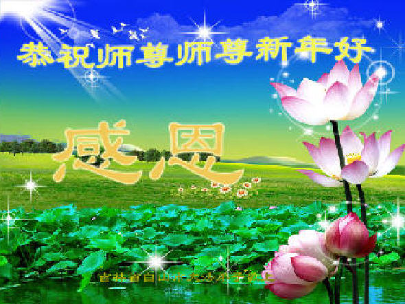 吉林省长春市大法弟子感谢师父的慈悲苦度,一定做好三件事,放下一切执着多救人,走好最后的修炼路,跟师父回家。再次谢谢师尊!祝师尊新年快乐!万顺全体大法弟子跪谢师恩!