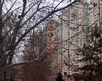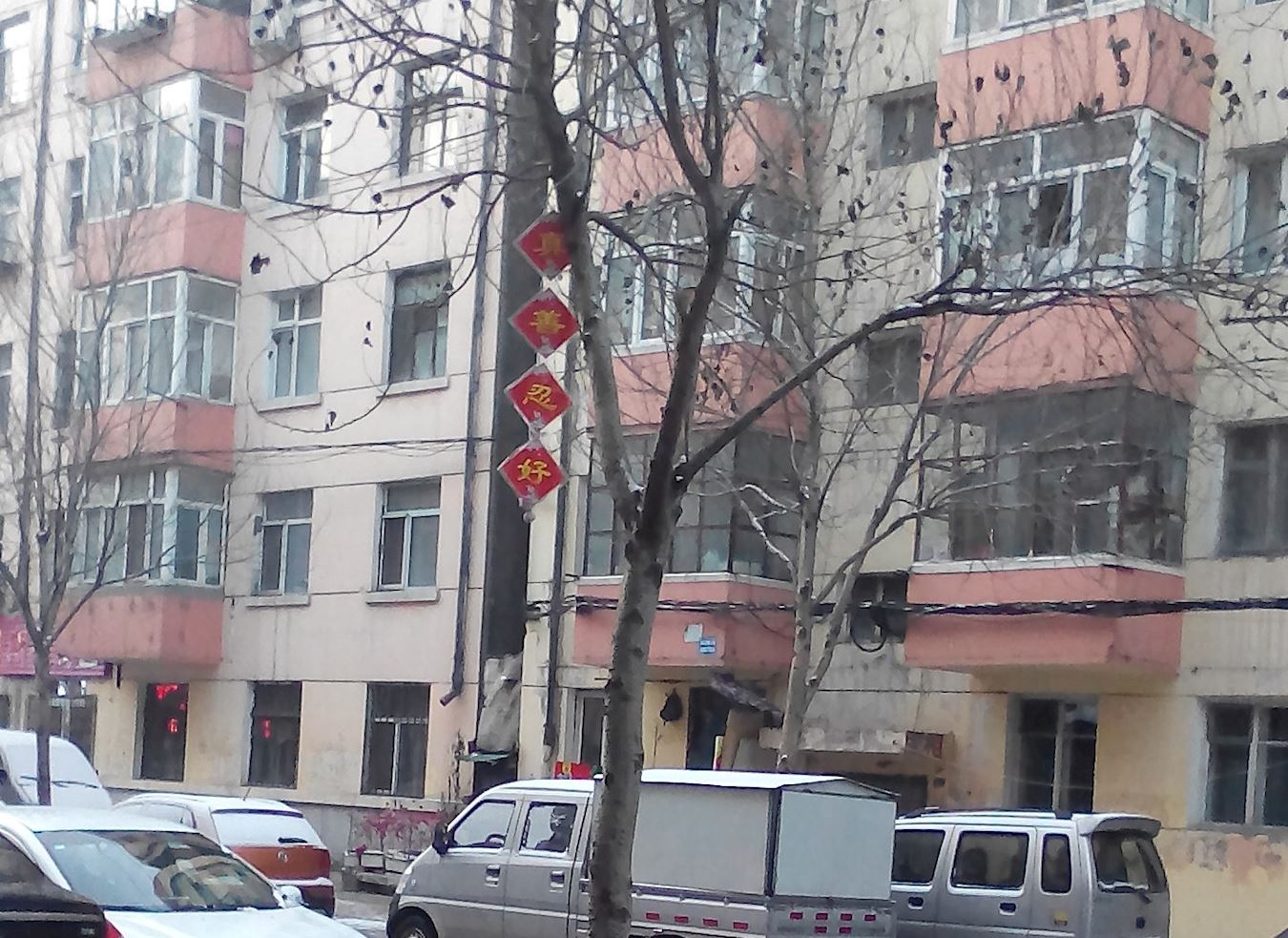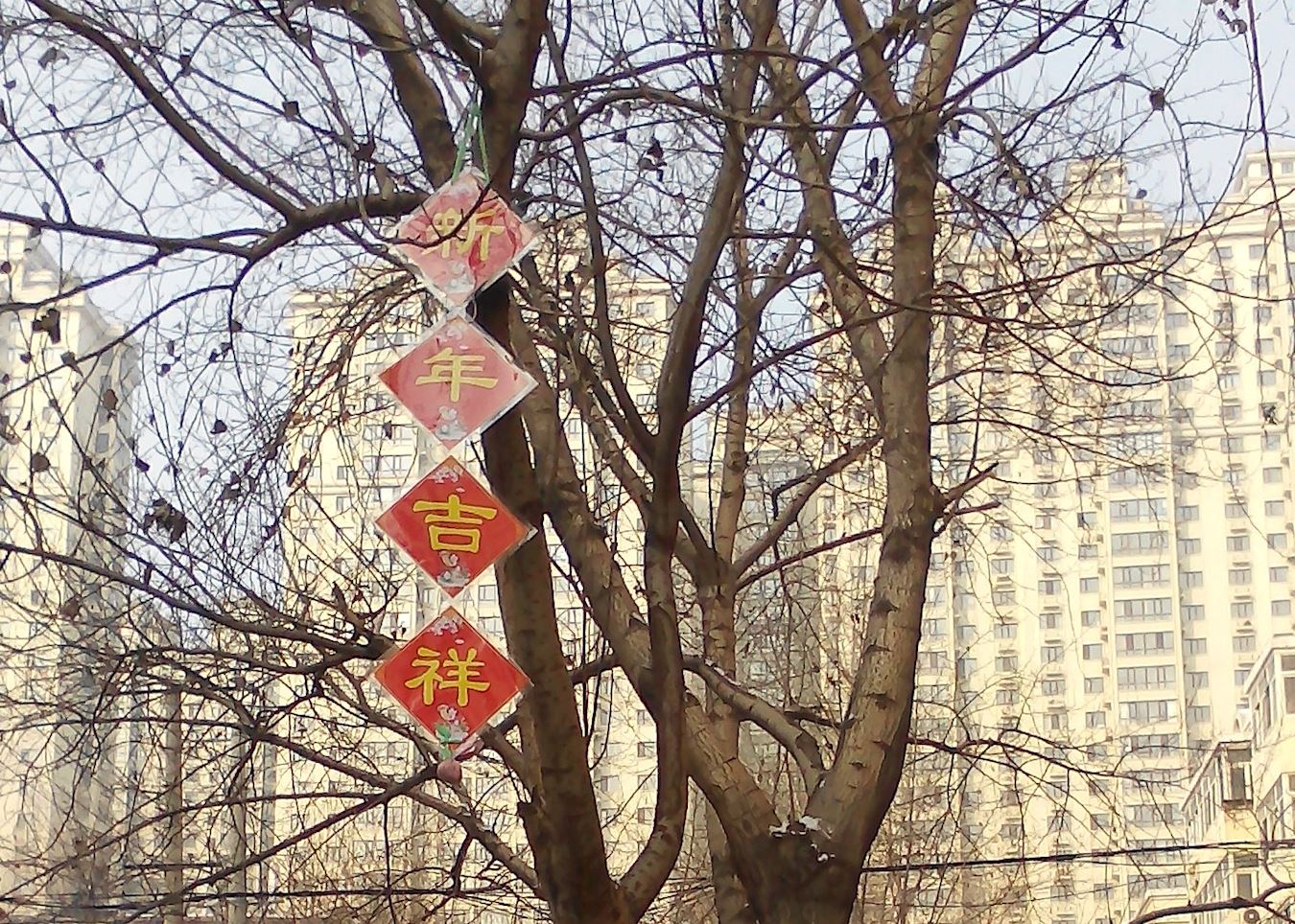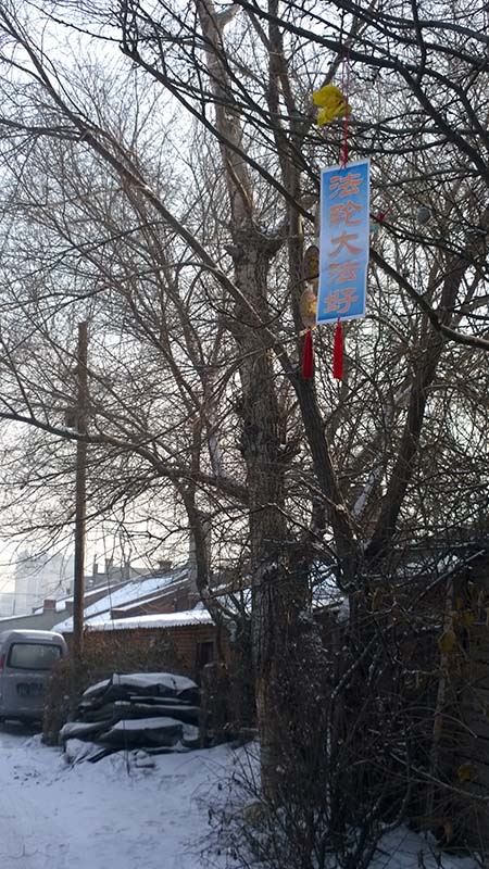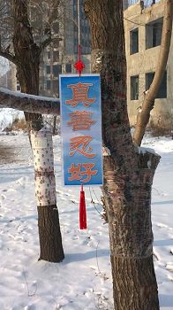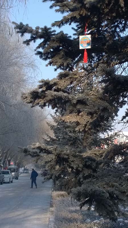 2017年1月18日,在哈尔滨街道出现的树挂向市民传递法轮功学员们的新年问候和祝福。