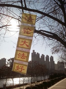 河北石家庄“法轮大法好”条幅悬挂一个星期
